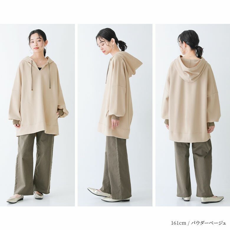 素材 本体:ポリエステル70% レーヨン25% ポリウレタン5% リブ:綿95% ポリウレタン5% フード紐:ポリエステル90% ポリウレタン10%