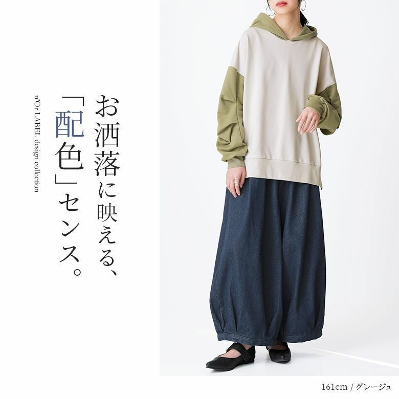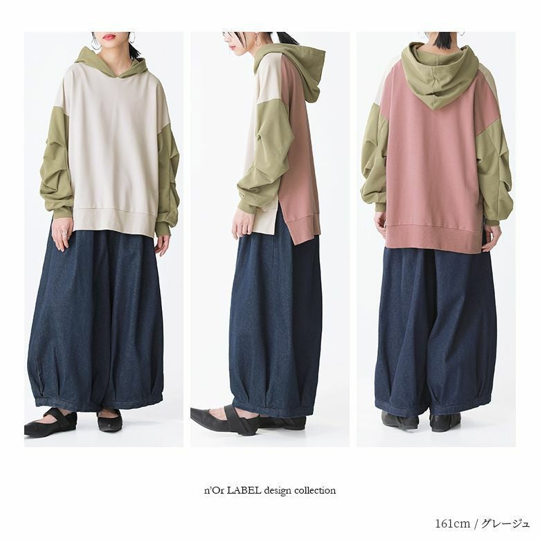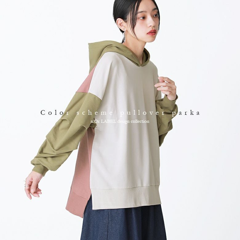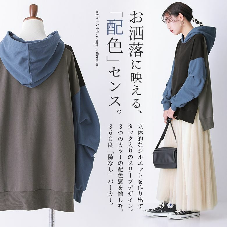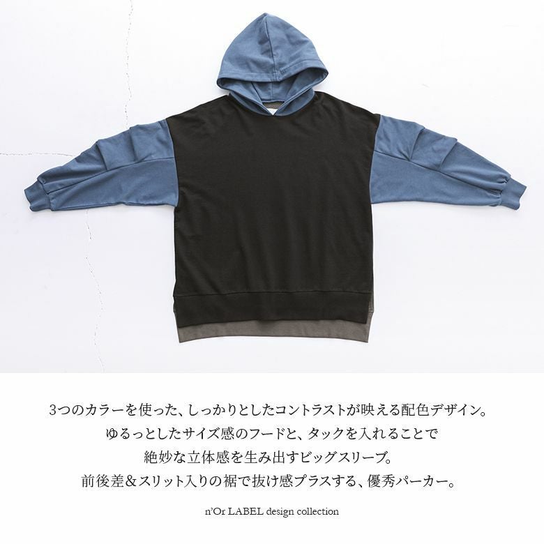 『n'OrLABELビッグスリーブ配色パーカー』