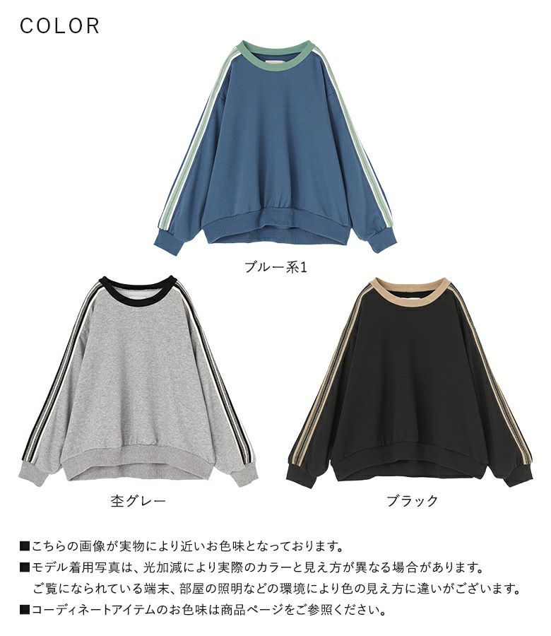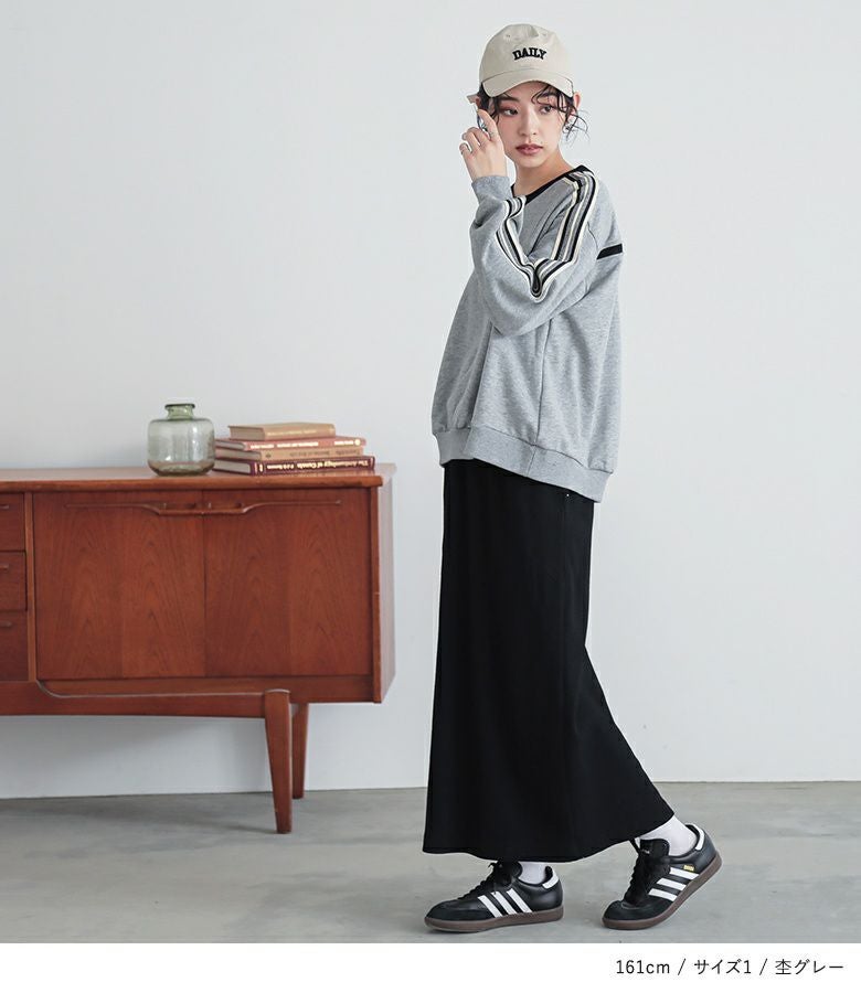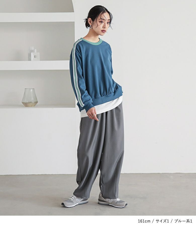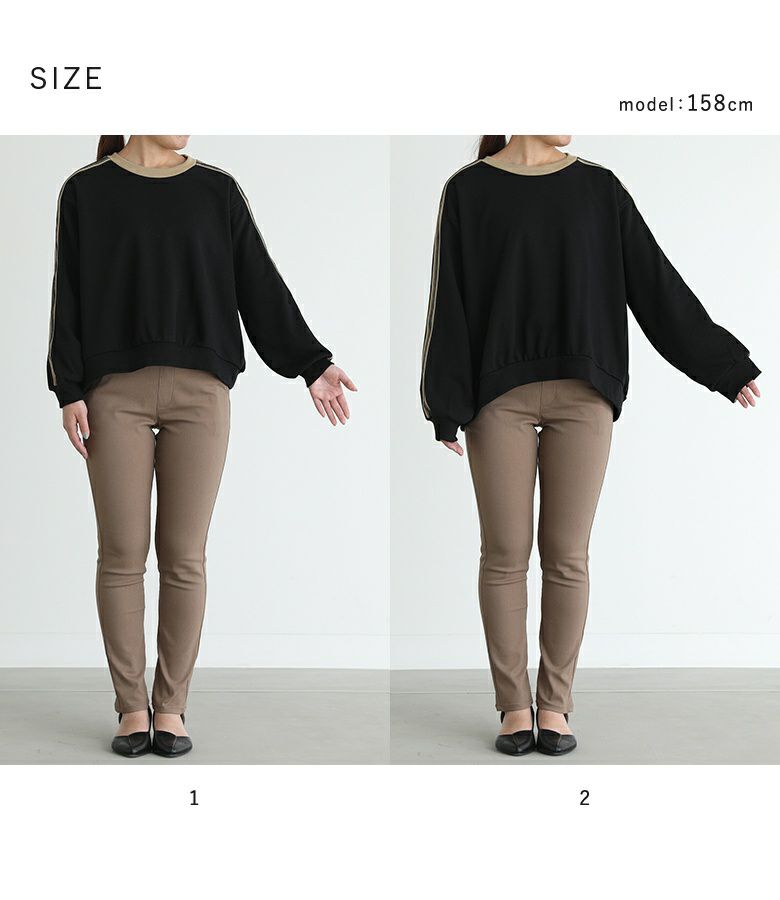 【普段着用】 Tops: L Bottoms: L | 【1】 袖丈:手首位 着丈:ヒップ真ん中より上位 腕周り:ややゆったり バスト:ややゆったり 全体:ややゆったり