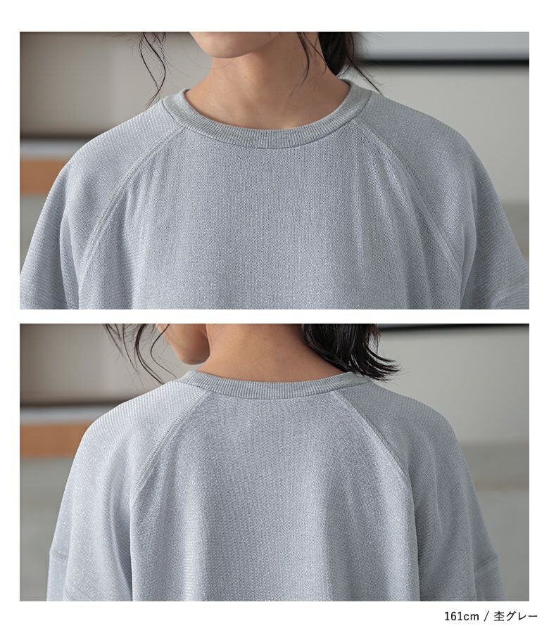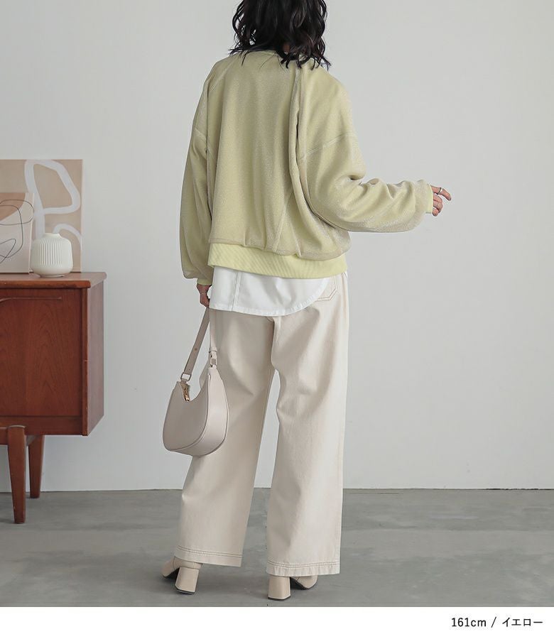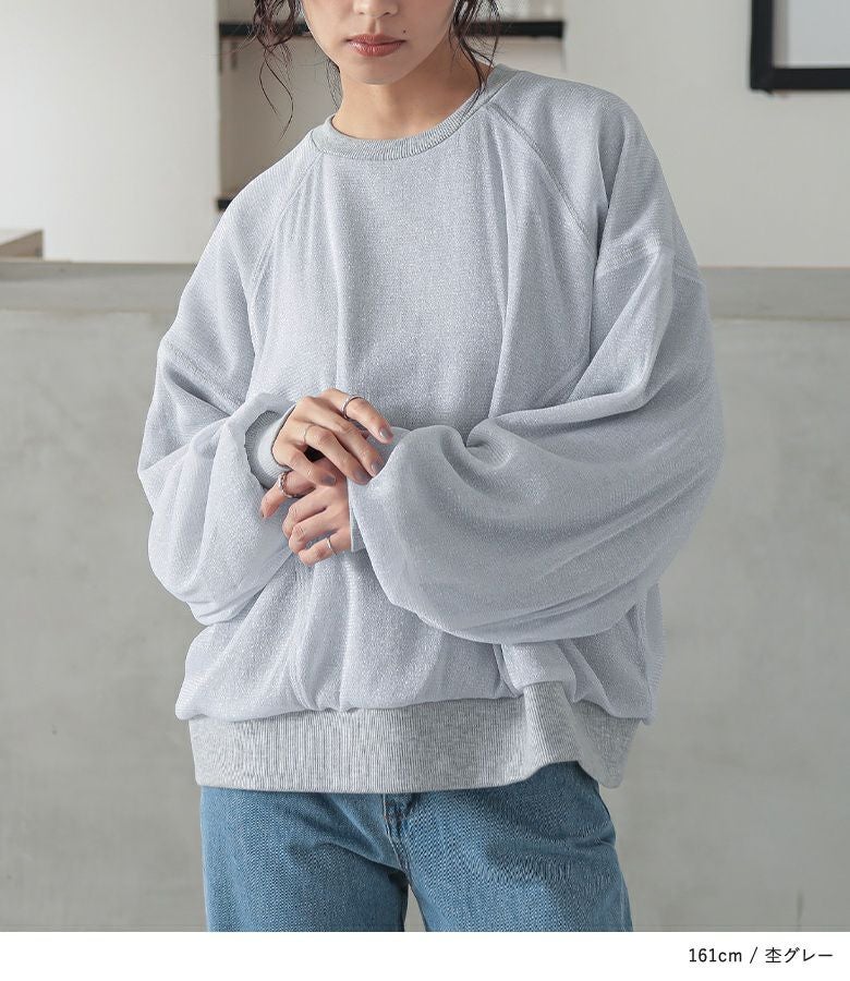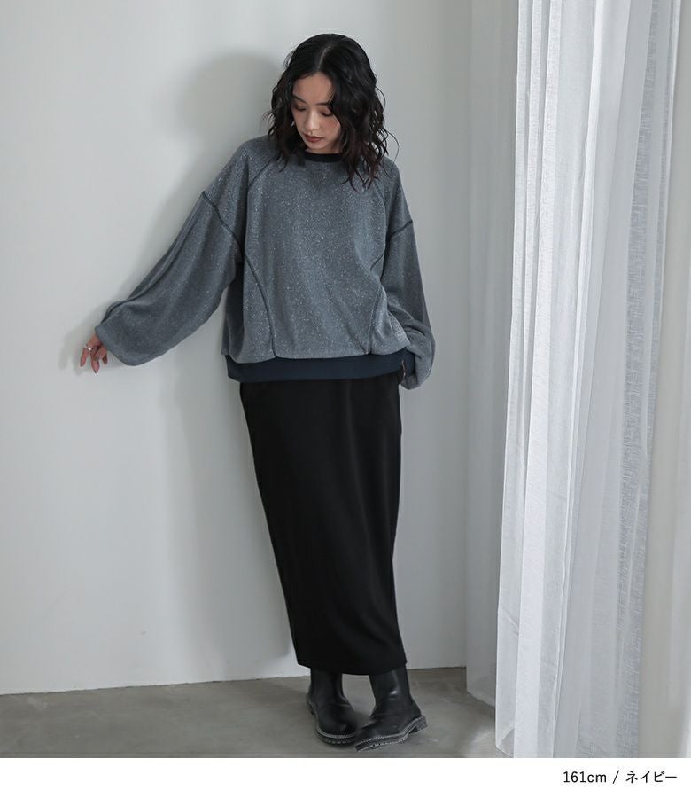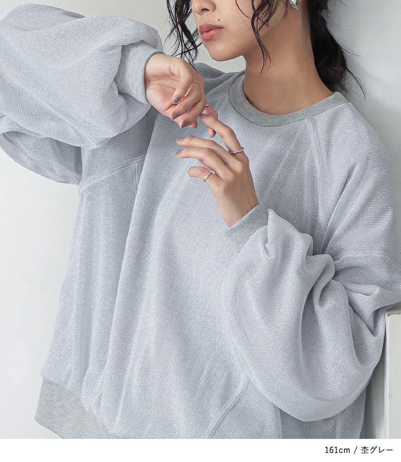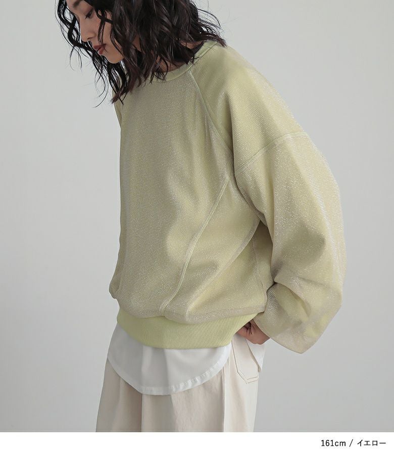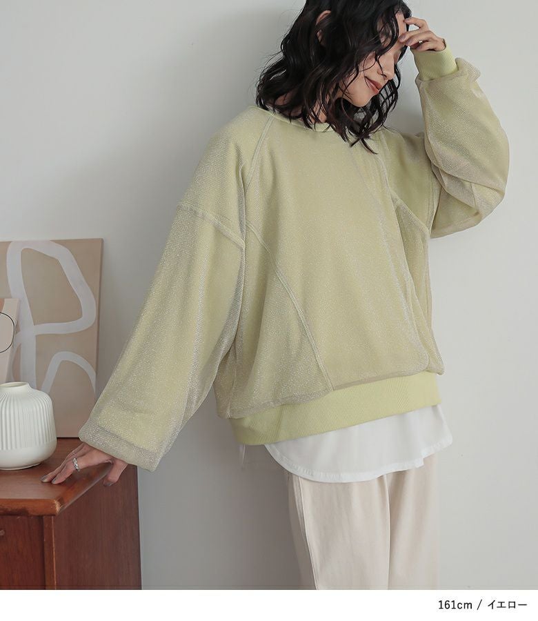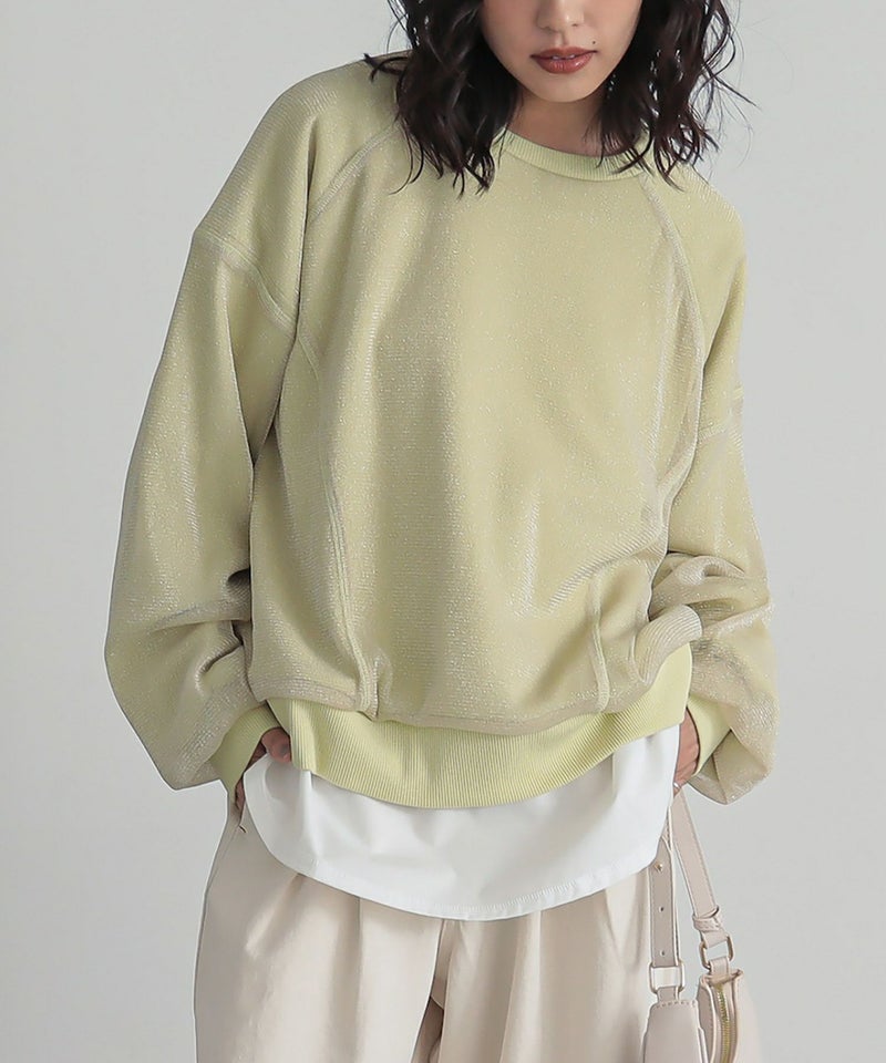 ラメチュールをレイヤードした、トレンド感のあるスウェット。