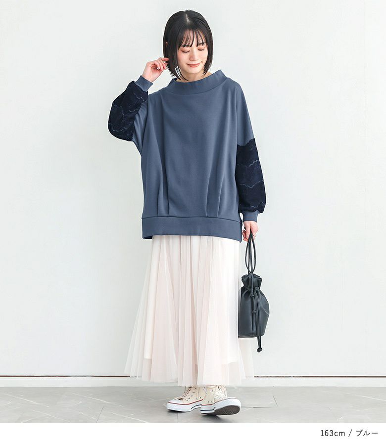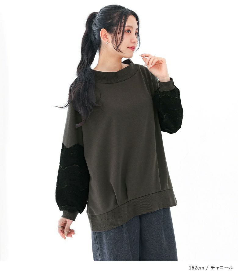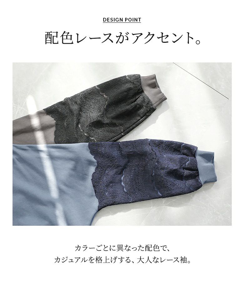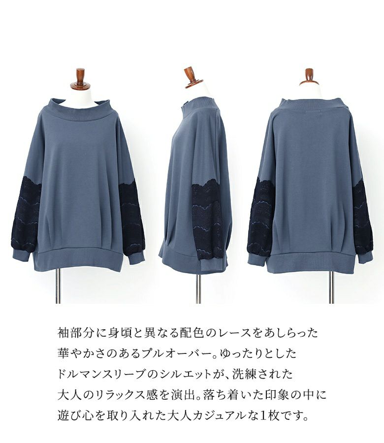 袖部分に配色のレースをあしらった華やなプルオーバー。