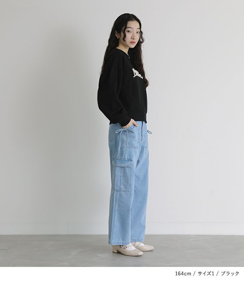 【普段着用】 Tops: L Bottoms: L | 【1】 袖丈:手の甲真ん中位 着丈:ヒップ上10cm位 腕周り:ゆったり バスト:ジャスト 全体:ジャスト