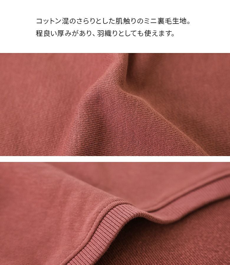 コットン混のさらりとした肌触りのミニ裏毛生地。程良い厚みで季節長くご着用いただけます。
