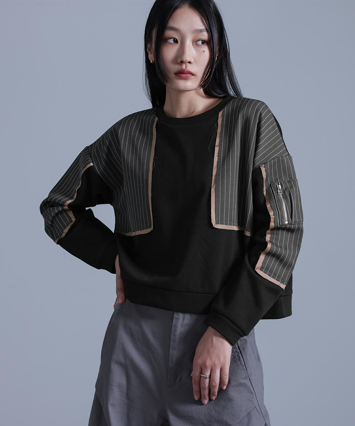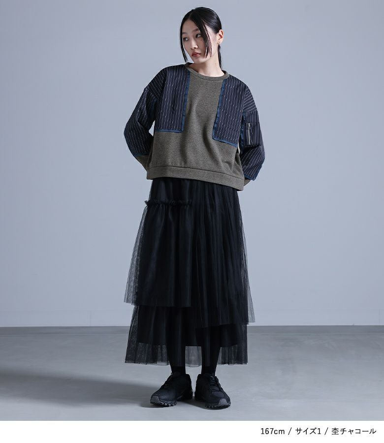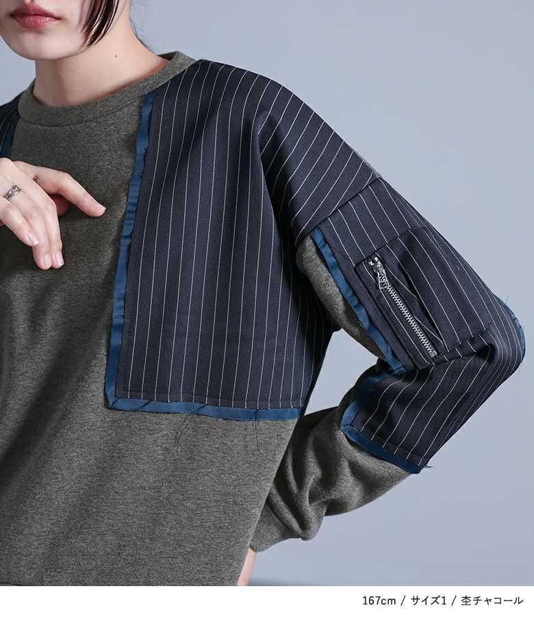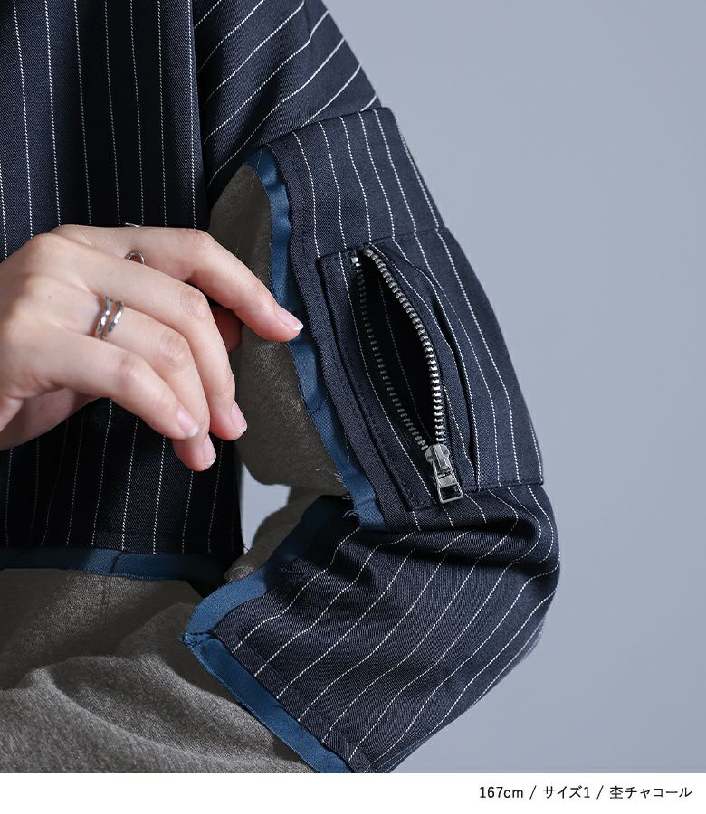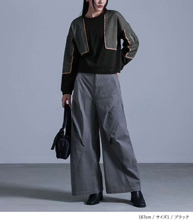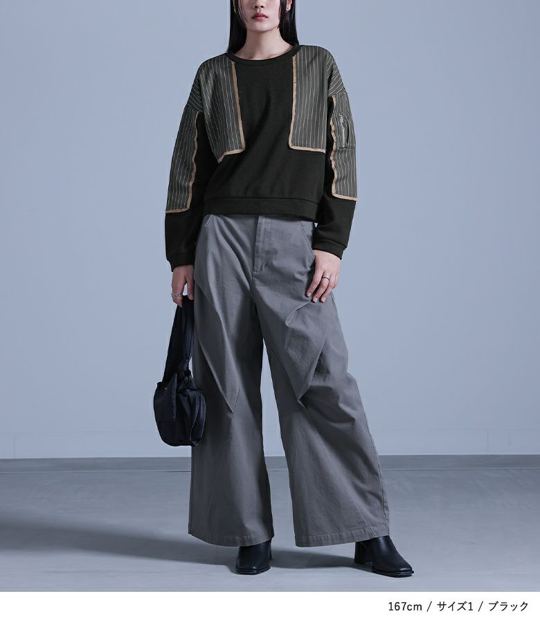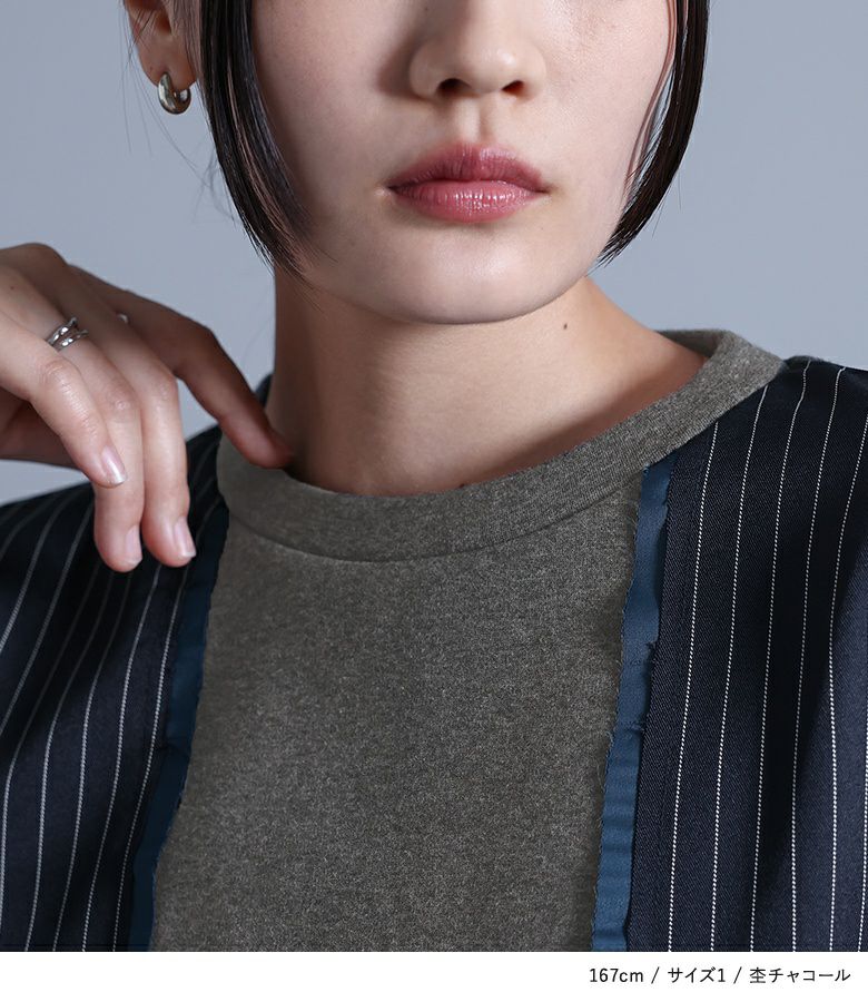 【普段着用】 Tops: M Bottoms: M/L | 【1】 袖丈:手の甲にかかる位 着丈:腰位 腕周り:ややゆったり バスト:ややゆったり 全体:スッキリ