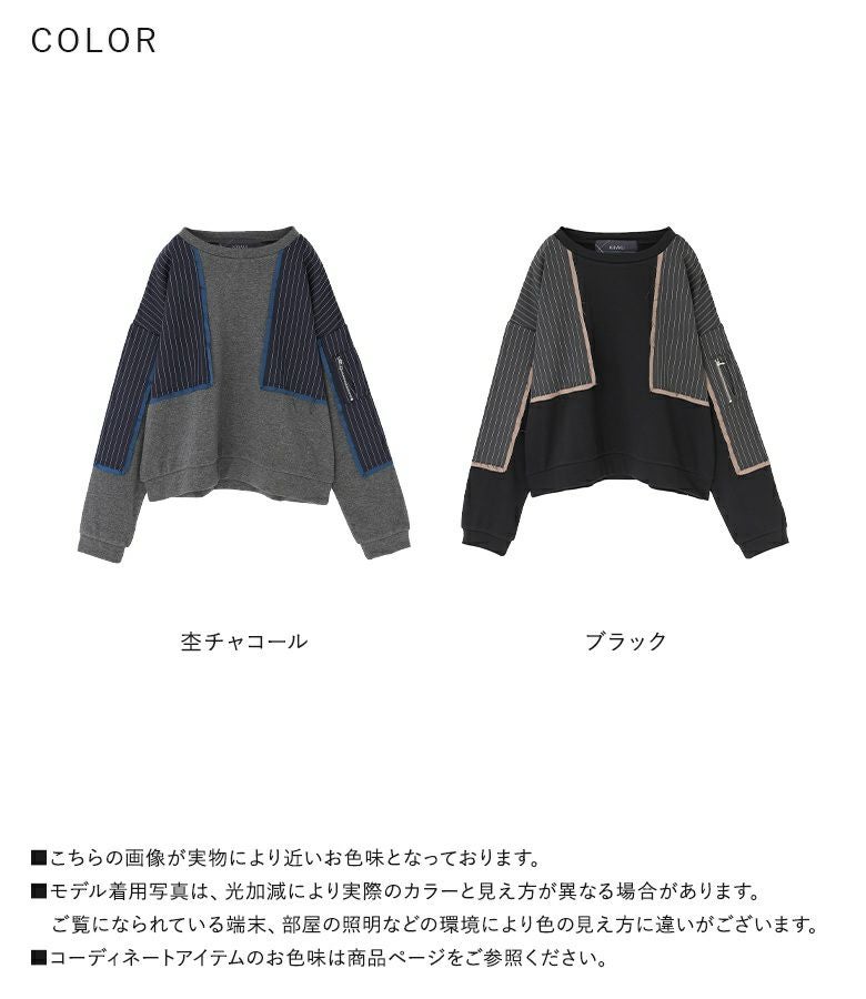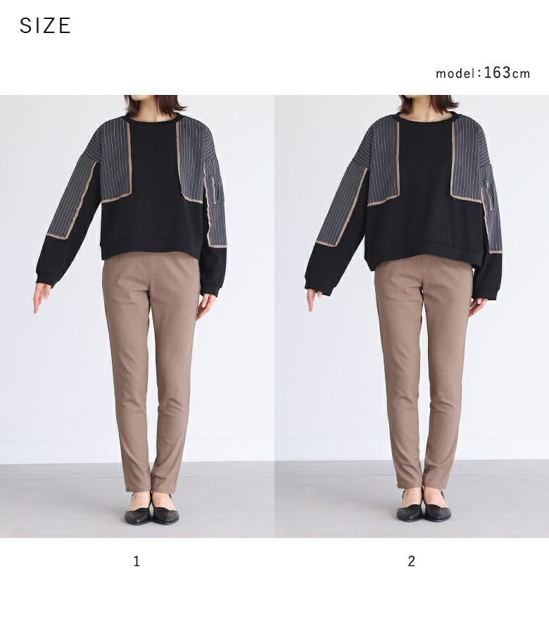 【普段着用】 Tops: L/LL Bottoms: L/LL | 【1】 袖丈:手の甲真ん中位 着丈:ヒップにかかる位 腕周り:ジャスト バスト:ややゆったり 全体:スッキリ