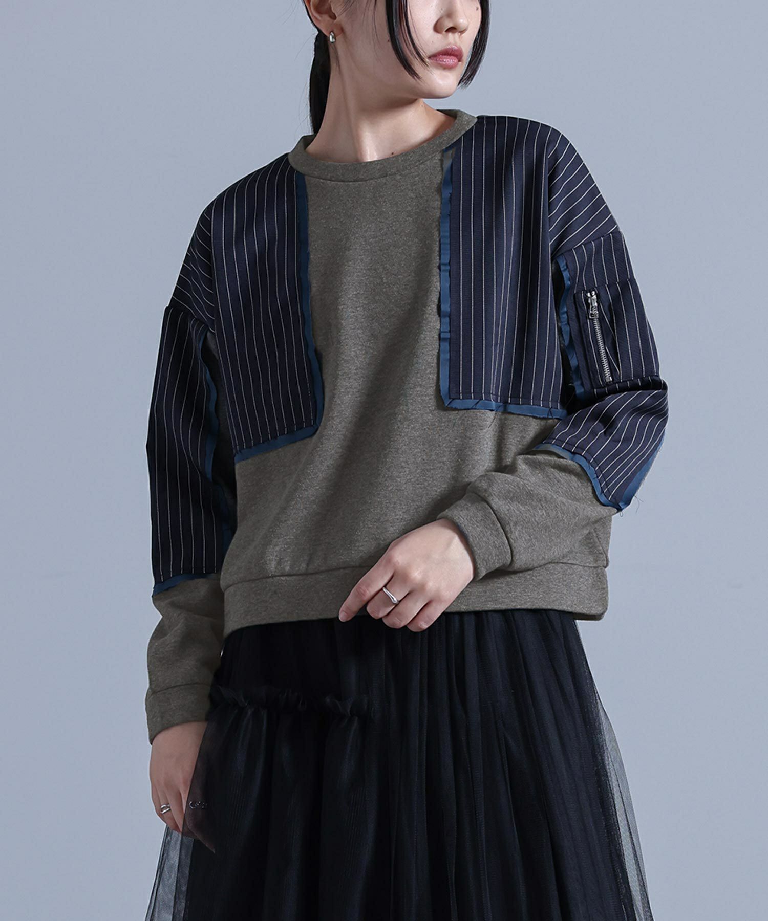 【2】 袖丈:指の真ん中位 着丈:ヒップ上3cm位 腕周り:ゆったり バスト:ゆったり 全体:ややゆったり