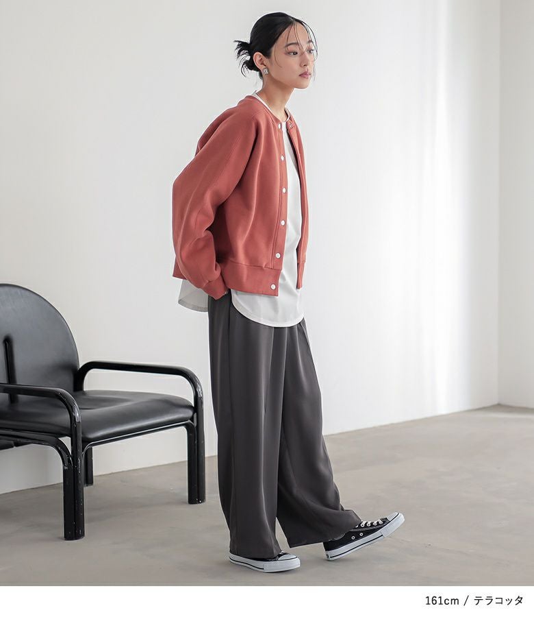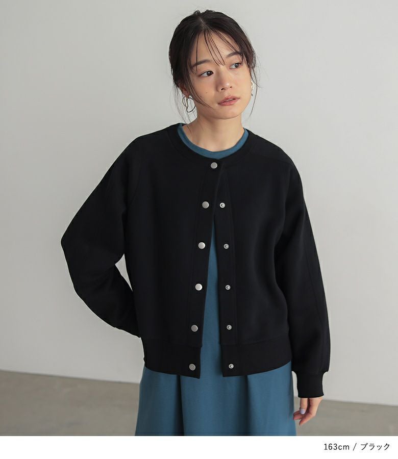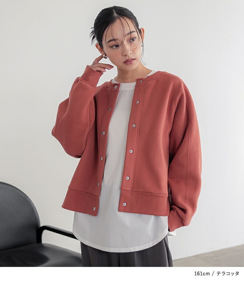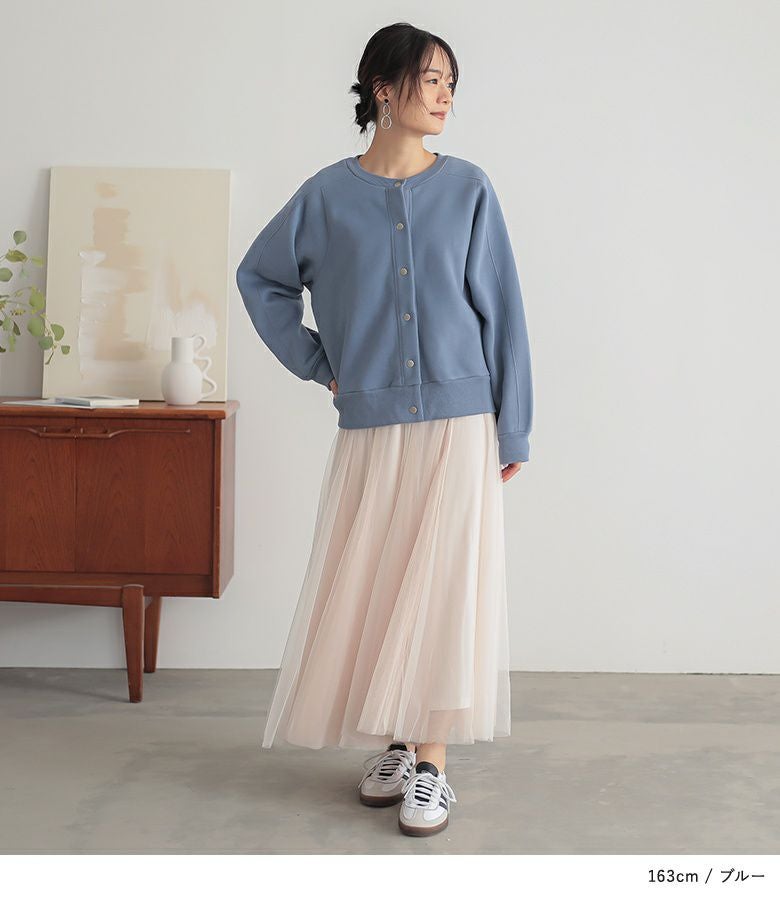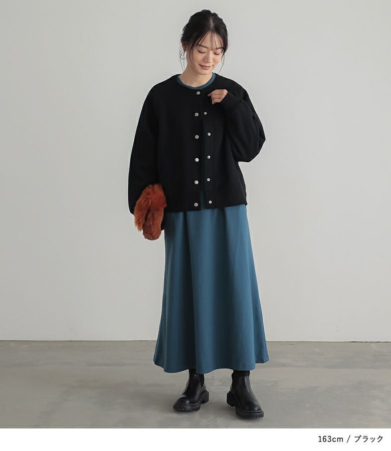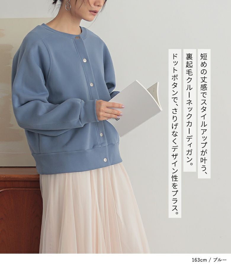 短めの丈感でバランスがとりやすいあったか裏起毛クルーネックカーディガン。