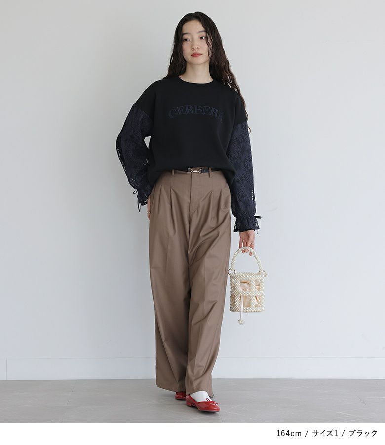 【普段着用】 Tops: M Bottoms: M/L | 【1】 袖丈:手の甲にかかる位 着丈:ヒップにかかる位 腕周り:ややゆったり バスト:ややゆったり 全体:スッキリ