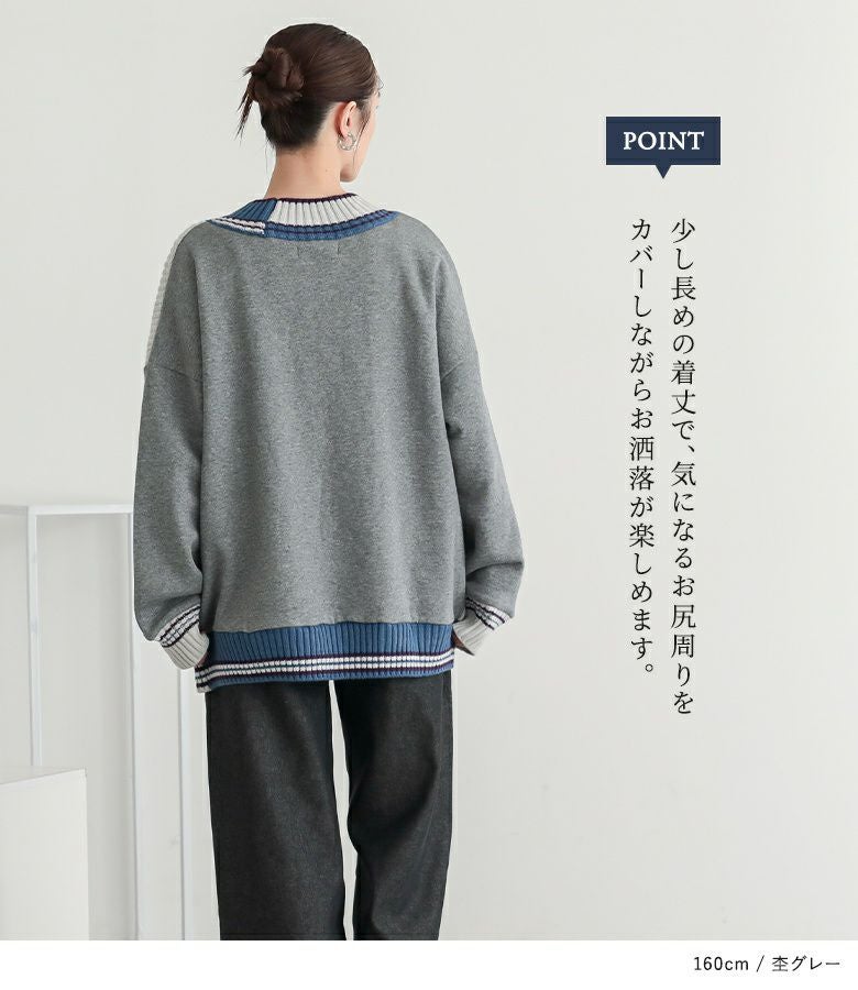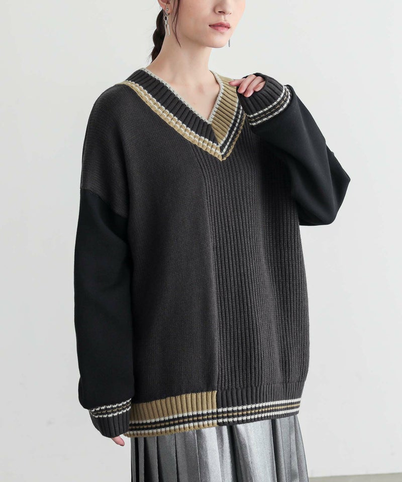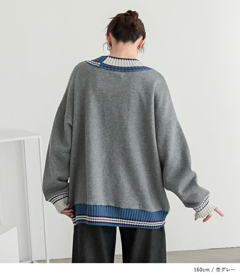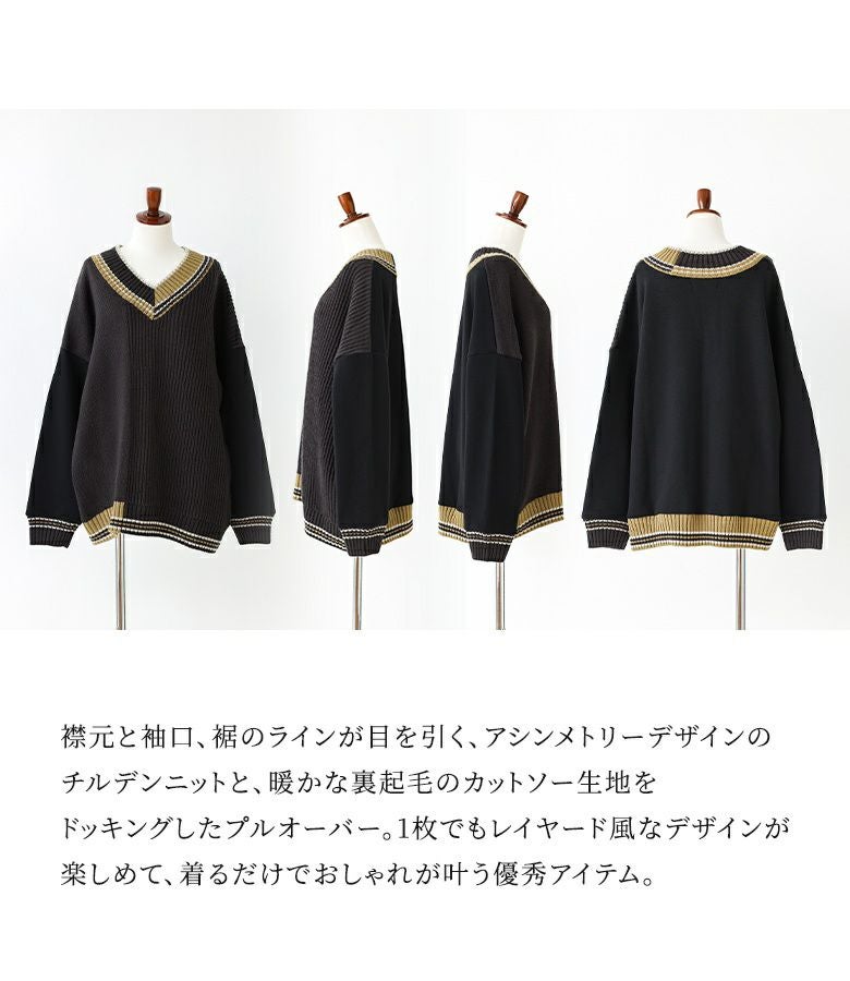 チルデンニット×裏起毛カットソーをドッキングしたプルオーバー。