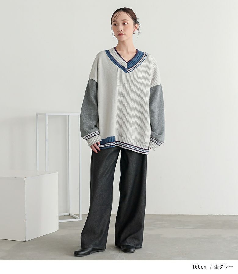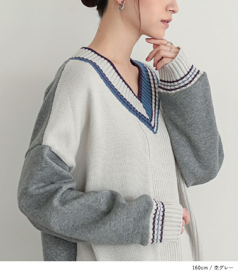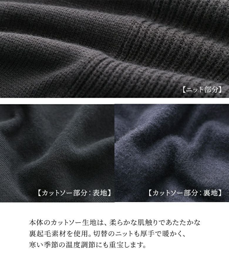素材ニット部分:アクリル100% カットソー部分:コットン70% ポリエステル30%