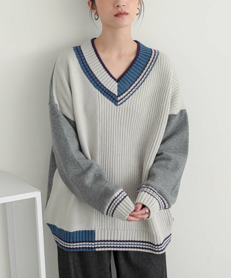 『n'OrLABELチルデンニット切替裏起毛プルオーバー』