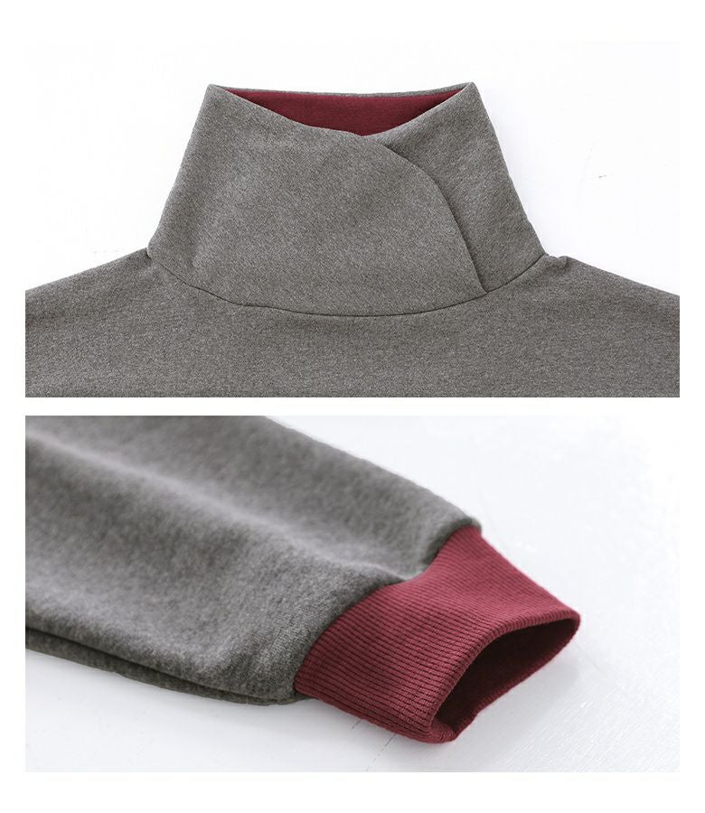 配色×スタンドネックデザインで、差のつくお洒落が手に入る裏起毛チュニックトップス♪