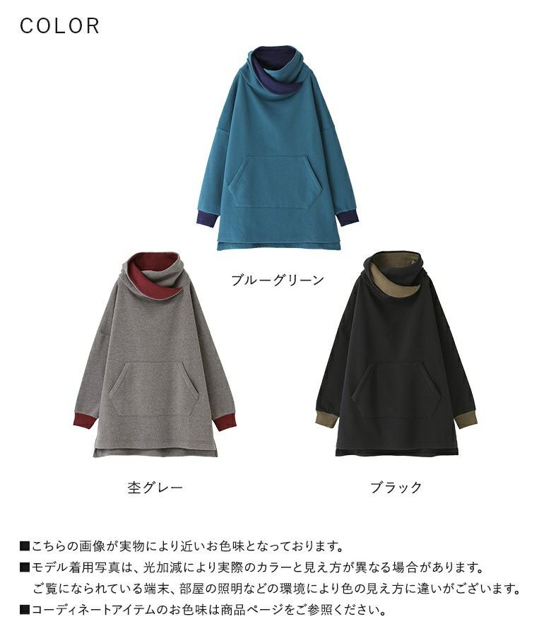 【新色登場】『n'OrLABEL配色スタンドネック裏起毛チュニック』