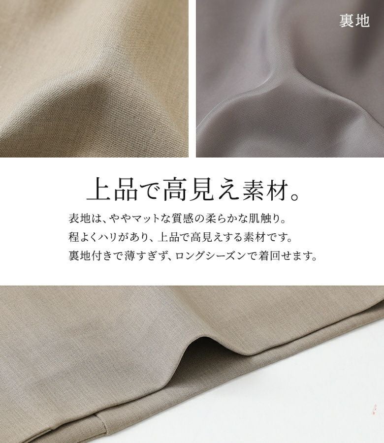 素材表地:ポリエステル95% ポリウレタン5% 裏地:ポリエステル100%