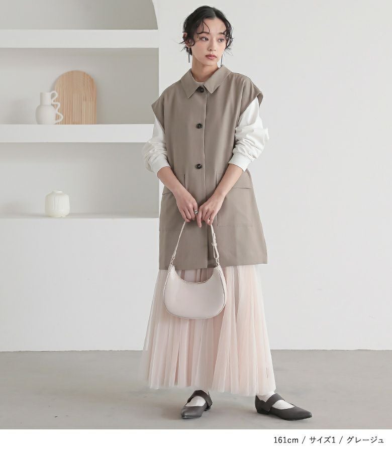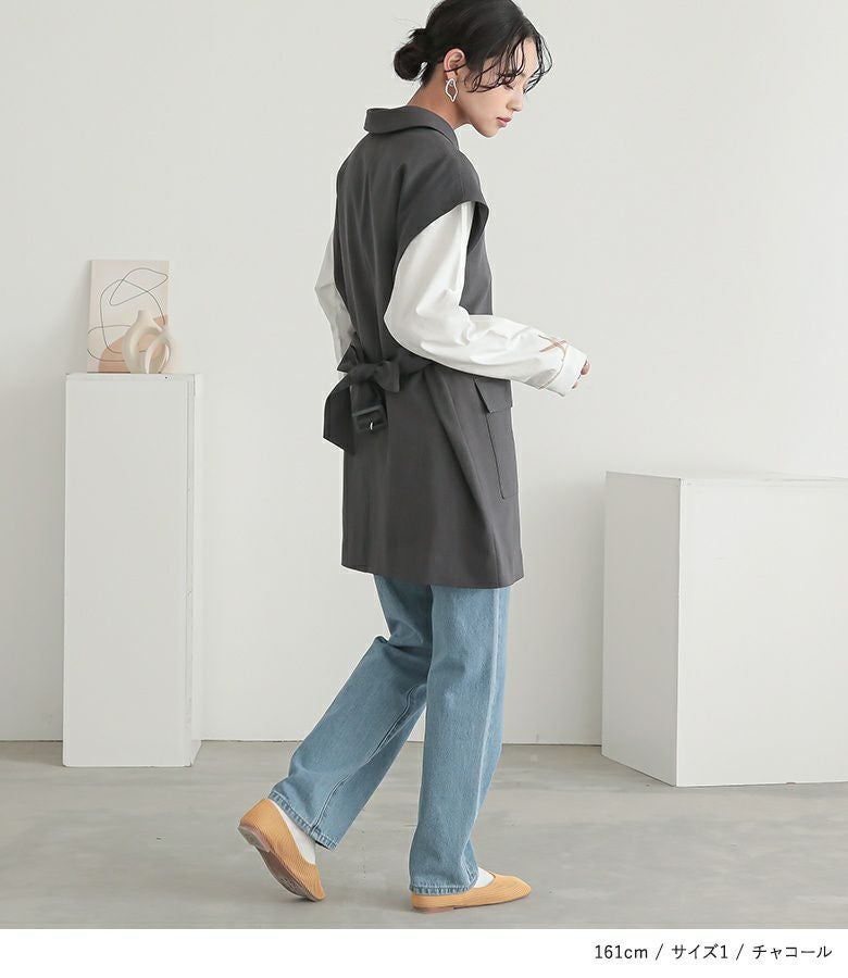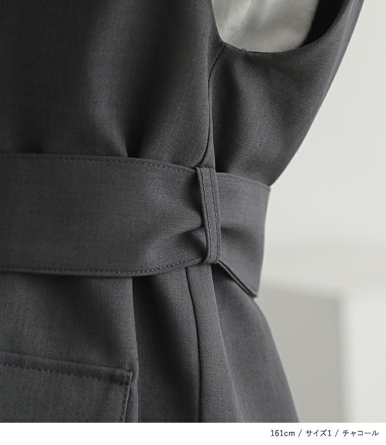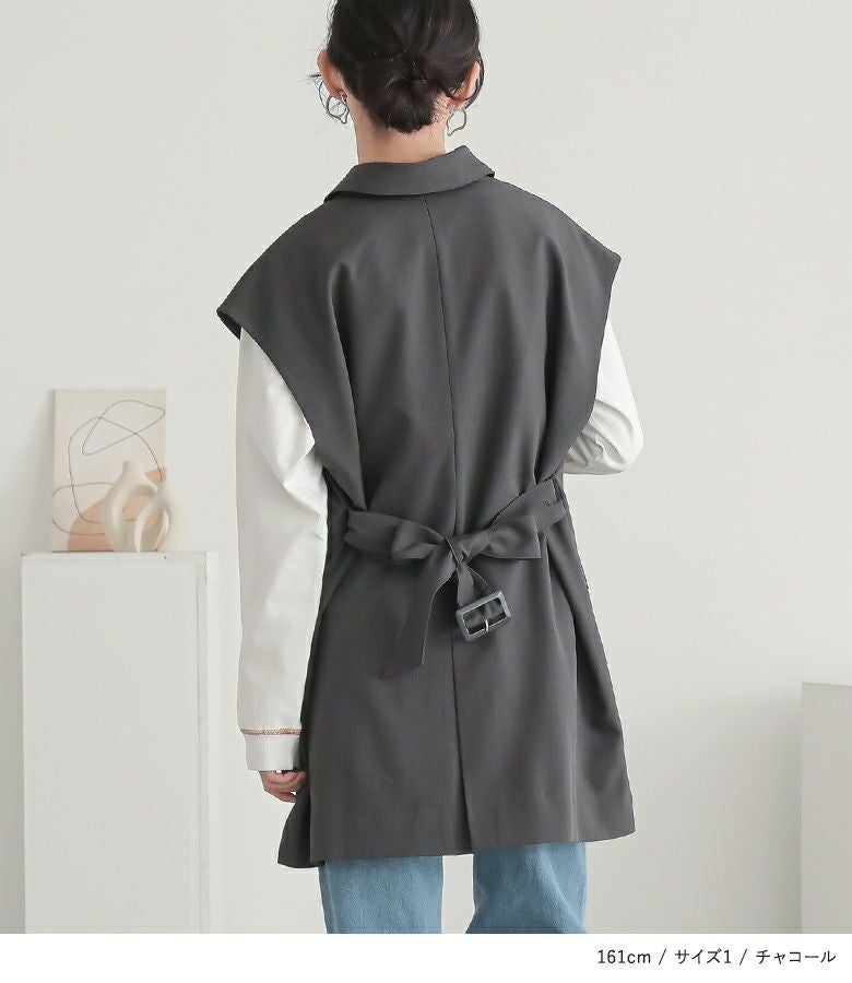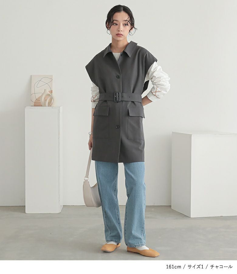 選べる2サイズ展開!アレンジが楽しめる、取り外し可能なベルト付きジレ。