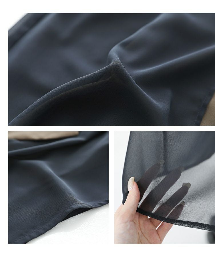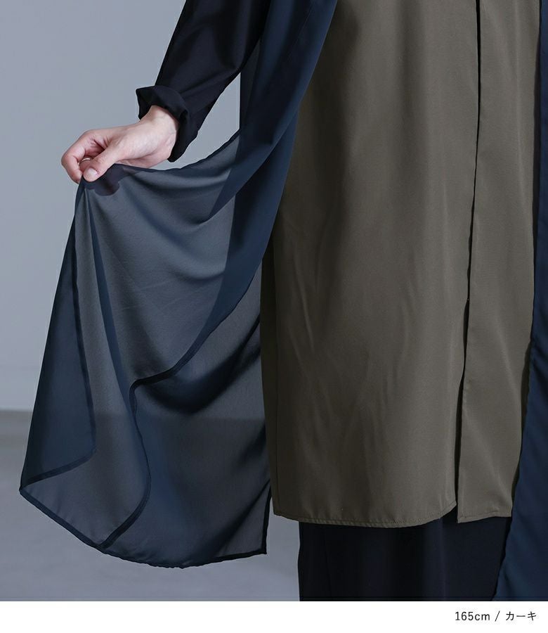 落ち感のある柔らかな布帛素材と、軽やかで透け感のあるシアー素材を組み合わせた上品な仕上がり。動くたびに揺れる柔らかさが女性らしさを引き立て、さらりとした肌触りで着心地も快適です。