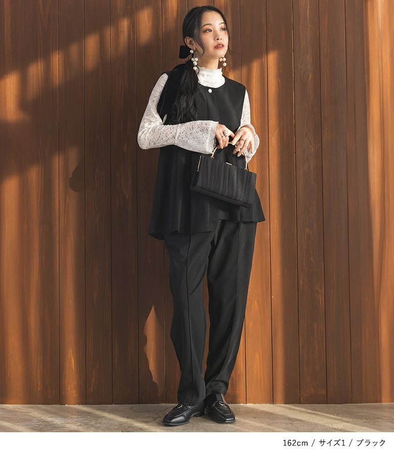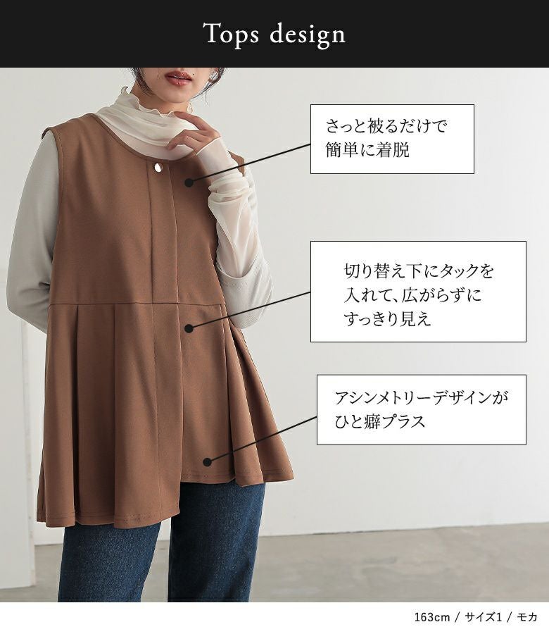 【普段着用】 Tops: M Bottoms: M/L | ◆ジレ 【1】 着丈:ヒップがすっぽり隠れる位 腕周り:ややゆったり バスト:ややゆったり
