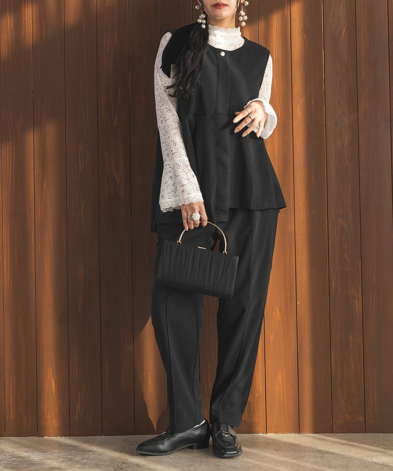 【普段着用】 Tops: S/M Bottoms: S/M | ◆ジレ 【1】 着丈:ヒップがちょうど隠れる位 腕周り:ゆったり バスト:ゆったり