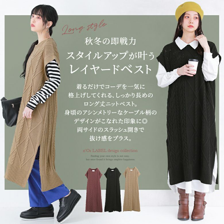 5. 『n'OrLABELケーブル編みロングニットベスト』【メール便不可】【50】