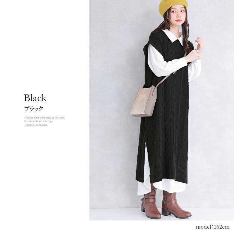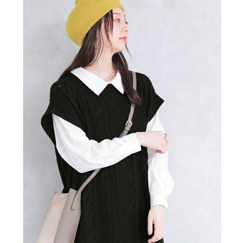 ブラック購入。ケーブル編みとベストの形もカワイイです。シャツワンピに合わせて着るとすごくカワイイです。