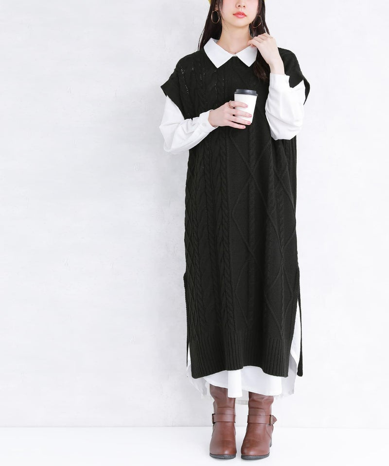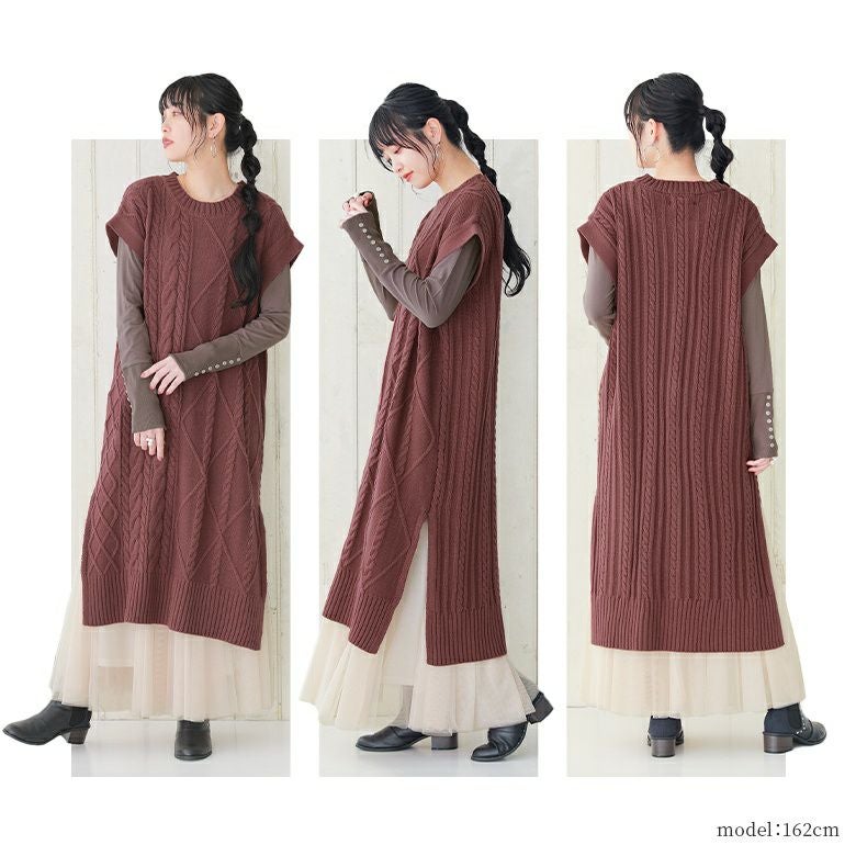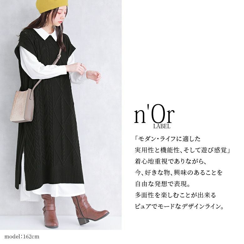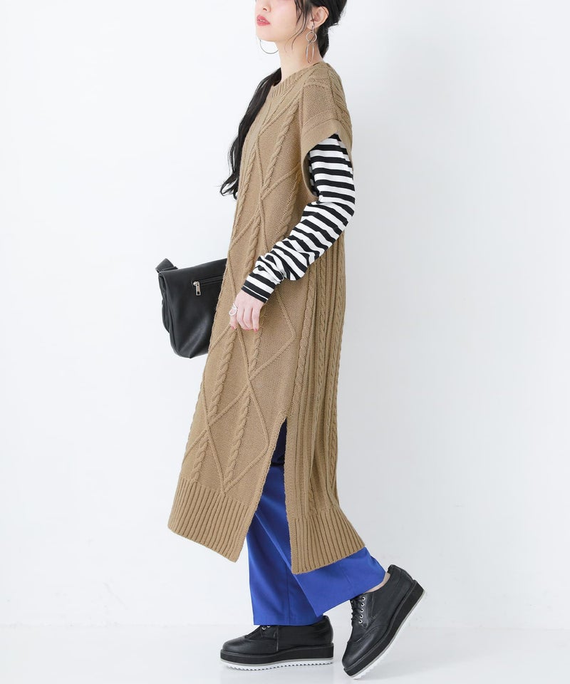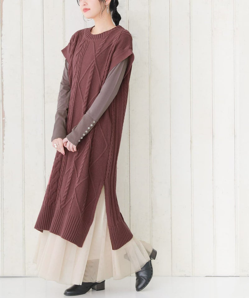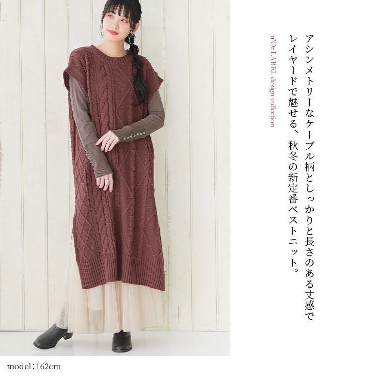 4. 『n'OrLABELケーブル編みロングニットベスト』【メール便不可】【50】