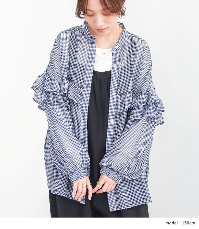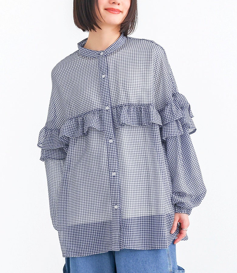 他の画像を見る 大人に似合う、甘さを抑えたフリルシアーギンガムチェックブラウス。 『フリルシアーギンガムチェックブラウス』【メール便不可】【20】 ¥ 3,960 税込 販売開始前です。 販売期間 2026/04/10 10:00 〜 2027/04/01 23:59 (0)