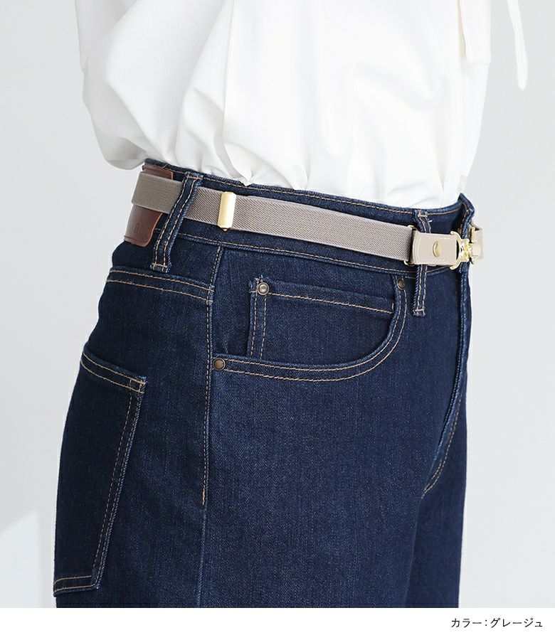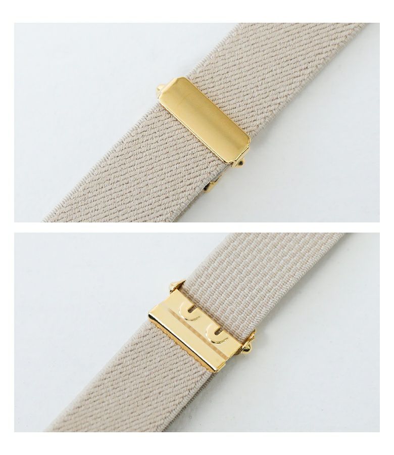 デイリー使いしやすいシンプルなデザインベルト。バックルは金具に引っ掛けて留める仕様で、付け外しがしやすいのもポイントです。