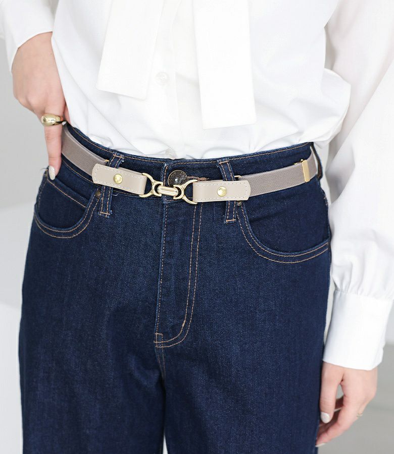 トップスをインしてバックル部分をポイントにするコーディネートがオススメです。シンプルなデザインなのでカジュアルな印象のデニムにも、綺麗めな印象のスラックスにもバランス良く合わせていただけます。シンプルなワンピースのウエストベルトとして使用し、アクセントを追加するスタイリングも◎