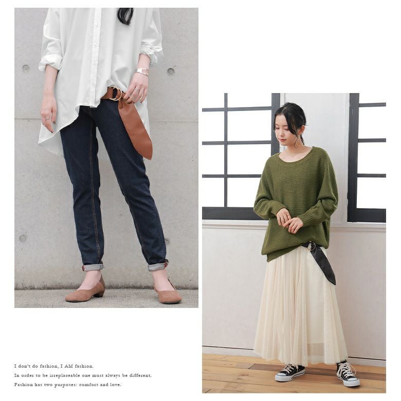 ベルト穴の無いデザインでお好みのサイズ感に調整可能。