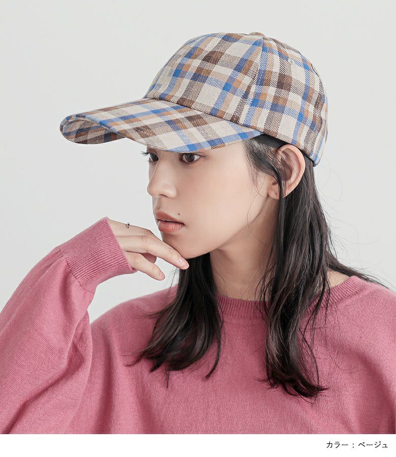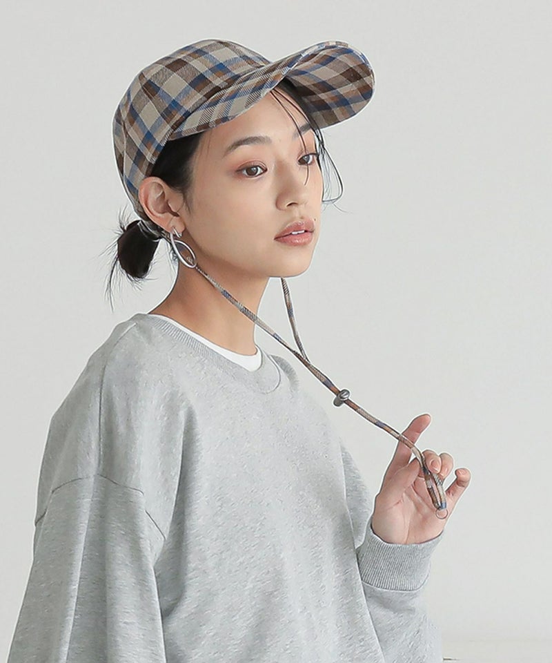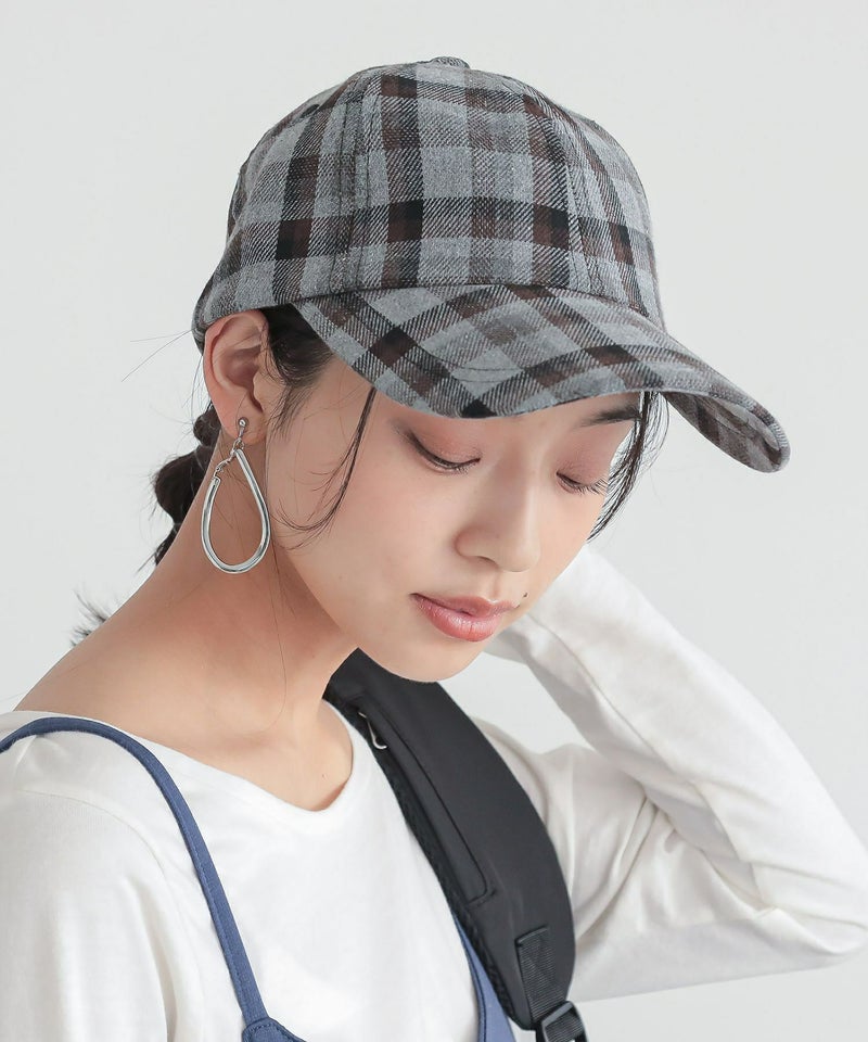シンプルなコーデもお洒落に決まる、チェック柄ロングビルキャップ。