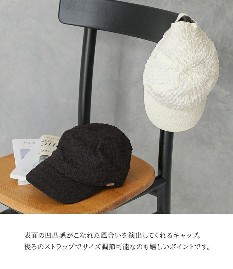 表面のぽこぽこ感がこなれた風合いを演出してくれるキャップ。