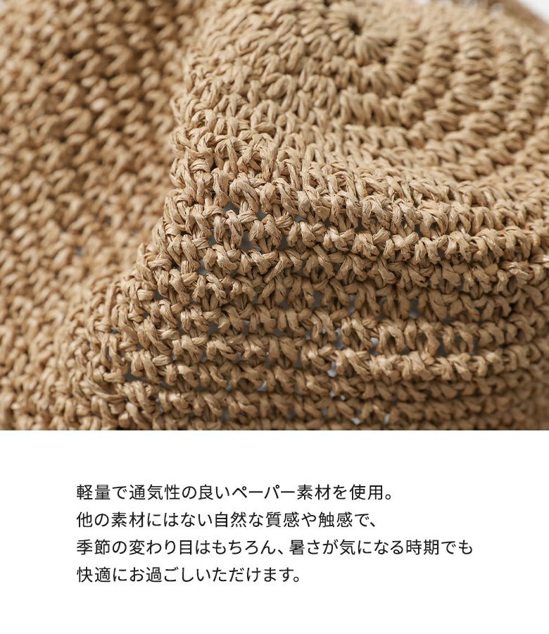 細編みが上品できれいめな印象♪シンプルで使いやすいペーパーハット。