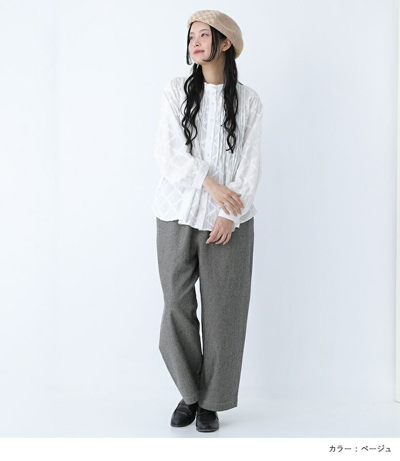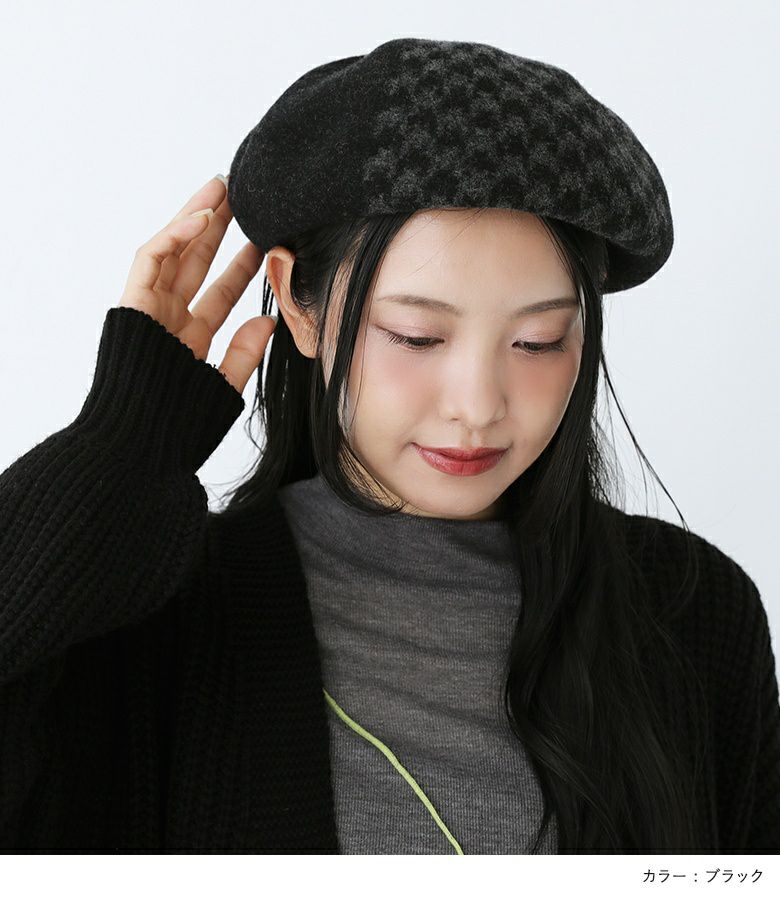 ほんのり起毛感のある生地を使用。秋冬にぴったりの暖かみのある素材感だからシーズンムードの高まるベレー帽です。