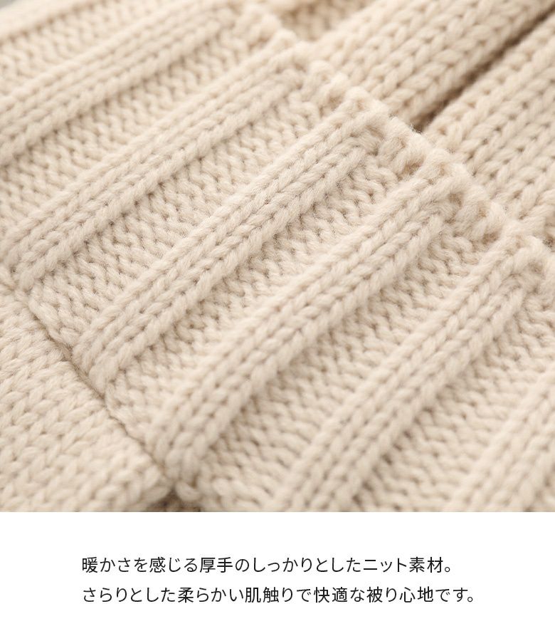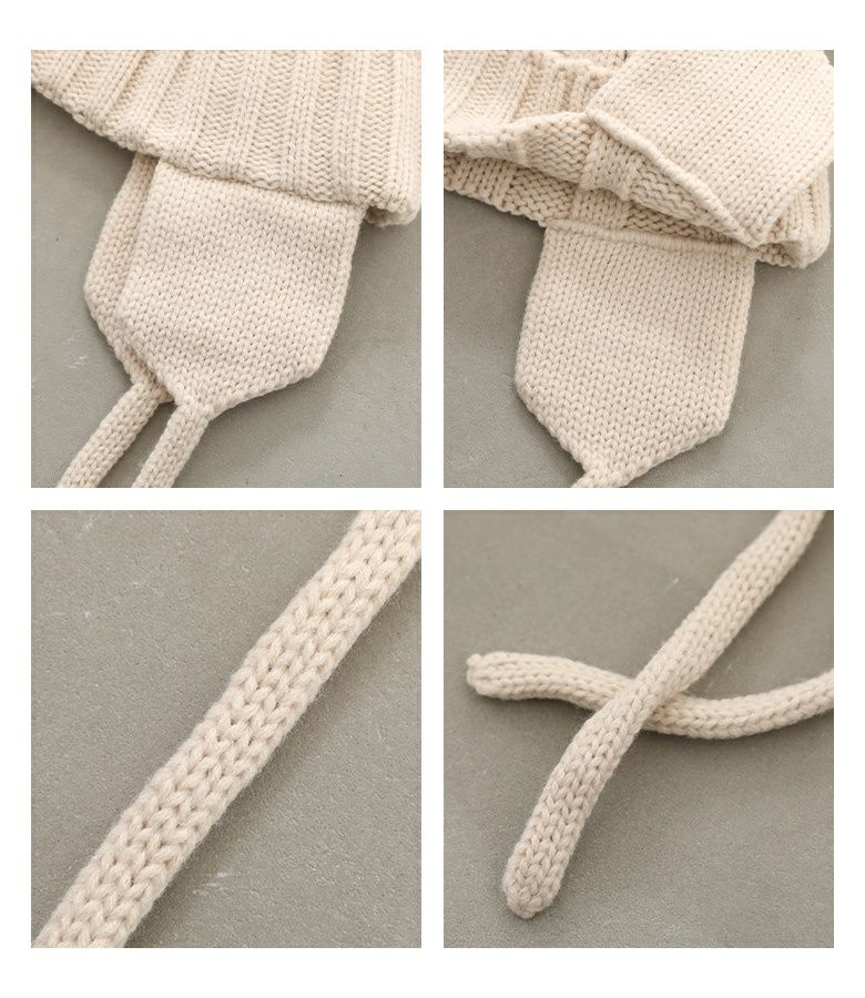 編地に変化を付けたデザインの耳当て付きニットキャップ。