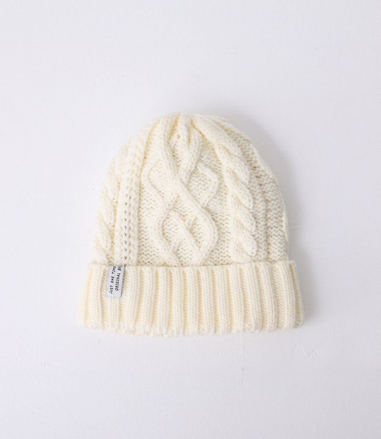 寒い季節に活躍するケーブル編み裏ボアニット帽。