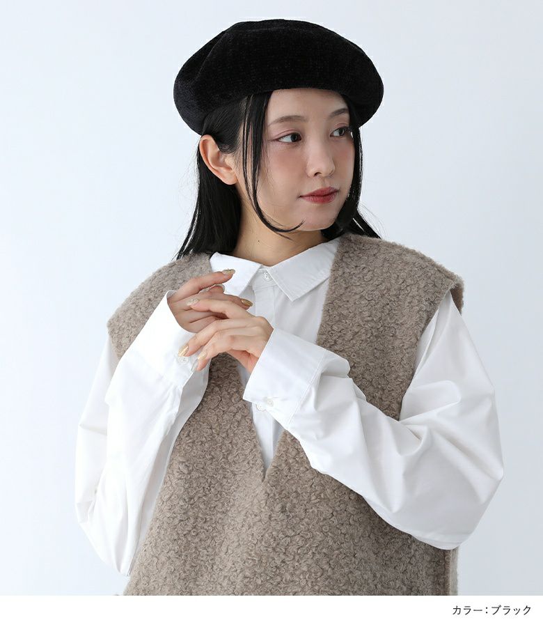 高級感があり、上品な印象のモールヤーンベレー帽。