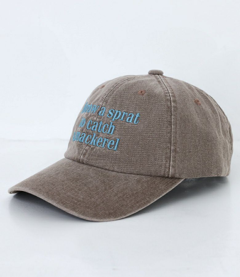 カラーごとに異なる刺繍糸で、ことわざを記したキャップ。刺繍している言葉もカラーごとに異なり、ベージュは「早起きは三文の徳」、ブラウンは「海老で鯛を釣る」、ブラックは「鉄は熱いうちに打て」という意味になっています。