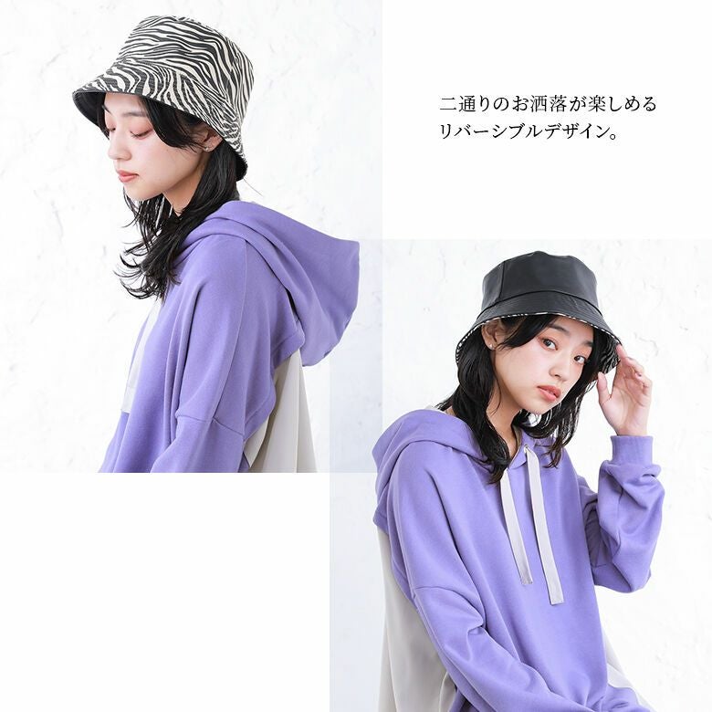 お洒落ゴコロを満たす、無地×アニマル柄リバーシブルバケットハットです。