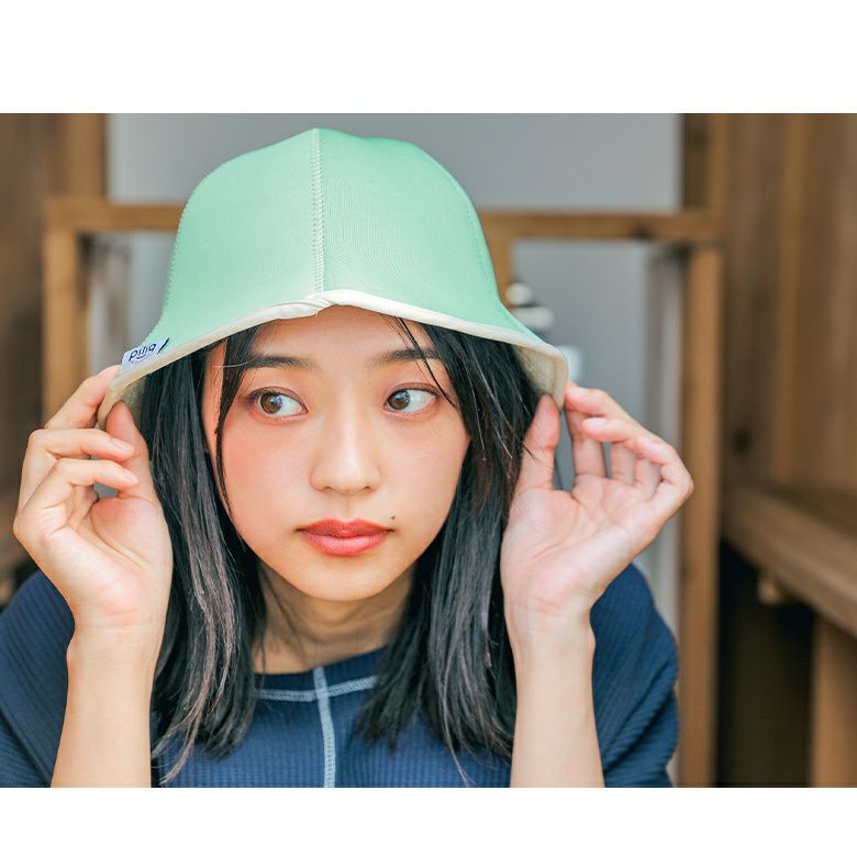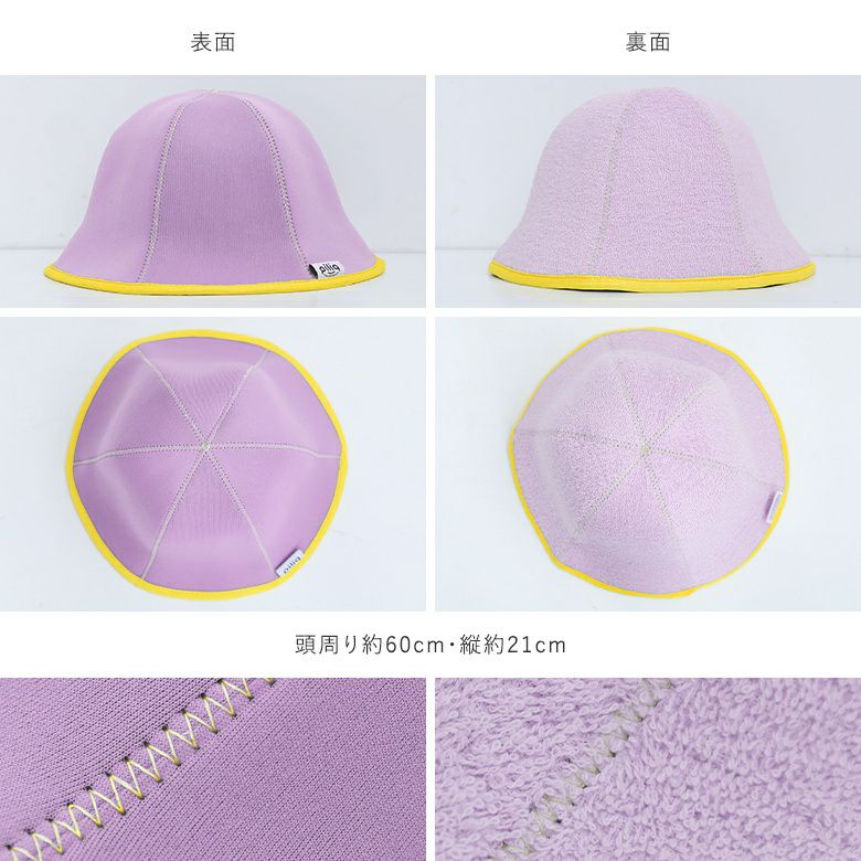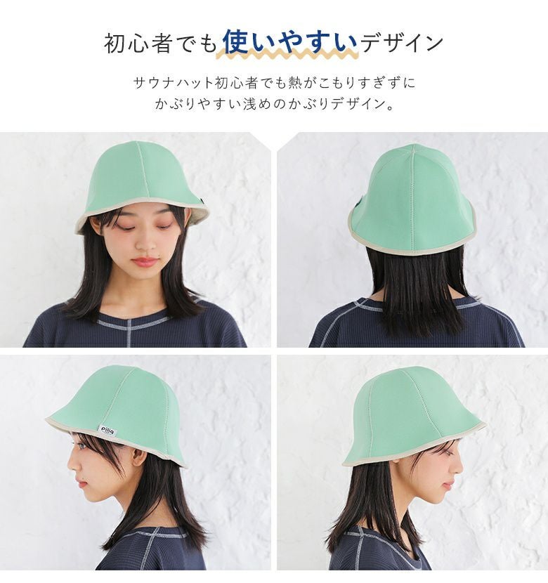 浅めのかぶりデザインでサウナハット初心者でも熱がこもりすぎずに被りやすい仕様。