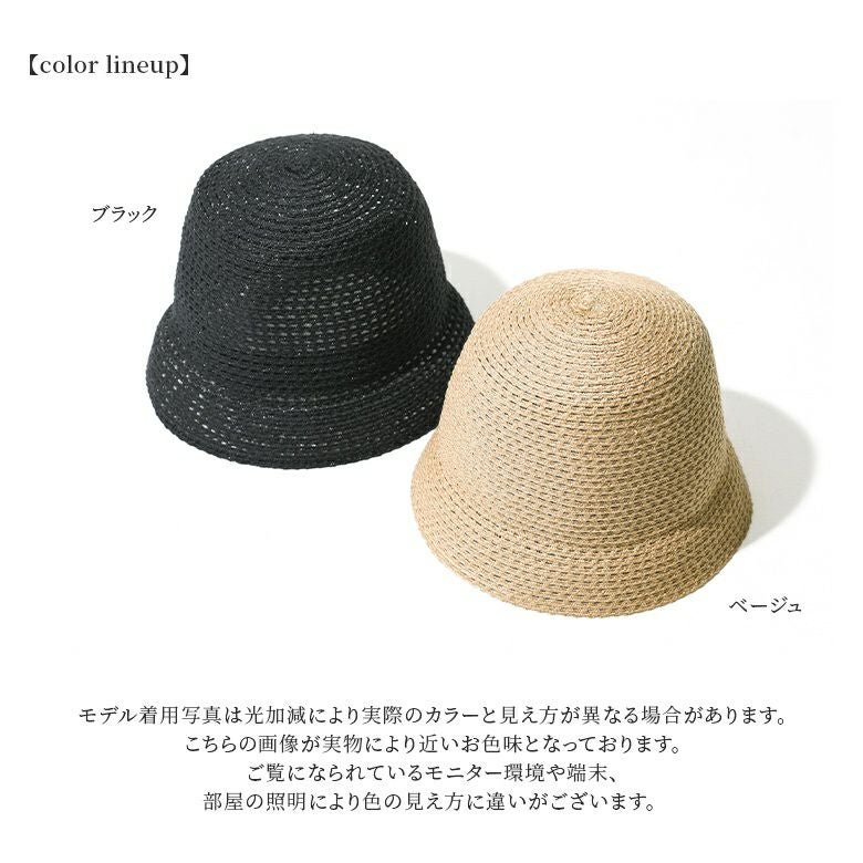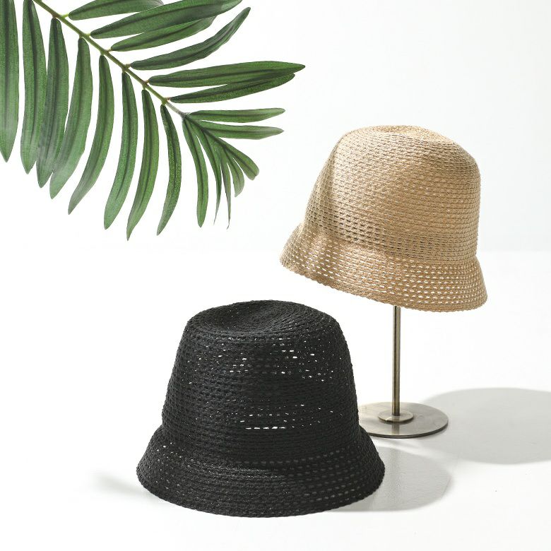 編み目に程よい透け感があり涼しげな印象の、ナチュラルな風合いを感じる素材感。軽くて通気性が良いため蒸れづらく、これからの季節のお洒落に快適な被り心地です♪