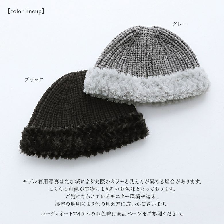 『ニット×フェイクファーデザインワッチキャップ』