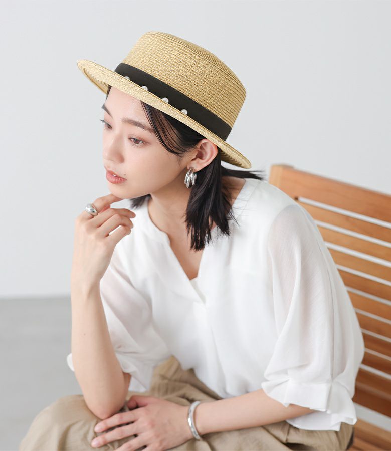 フェイクパール付き特別感のあるカンカン帽。