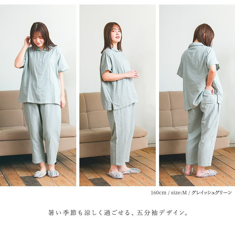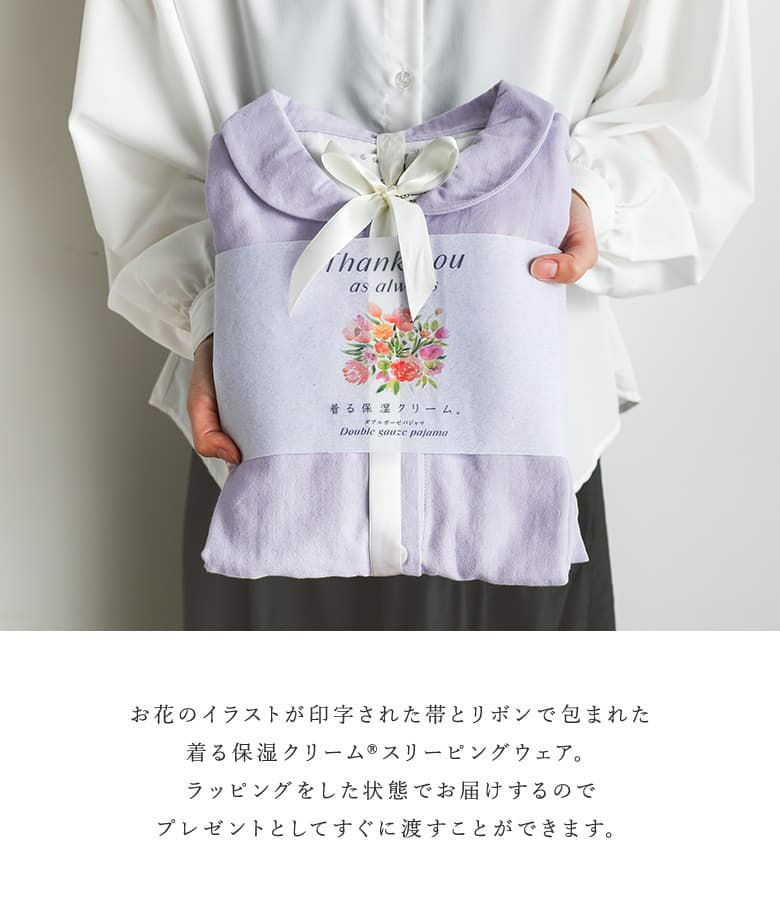 天然由来成分配合で乾燥からお肌を守ってくれる、5分袖前開きパジャマ[Thankyou帯+リボンラッピングタイプ]