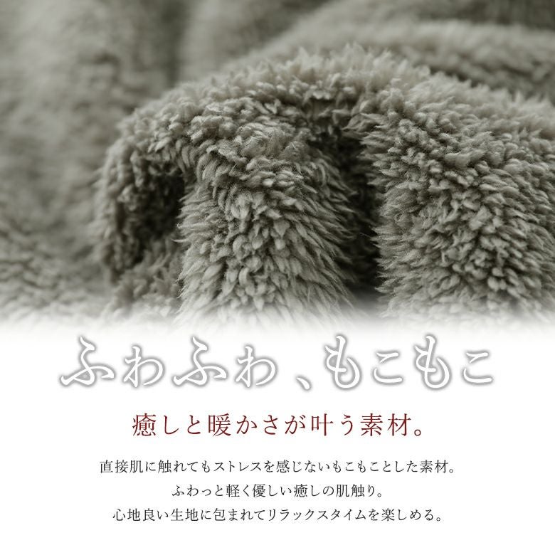 当店の「着る毛布」シリーズは、体に触れてもノンストレスな、軽くて暖かなボア素材が人気の秘密。フワフワで心地よい癒しの肌触りが至福のリラックスタイムを叶えます。