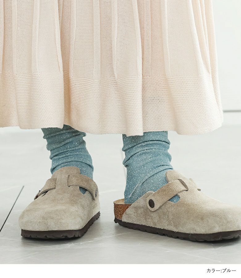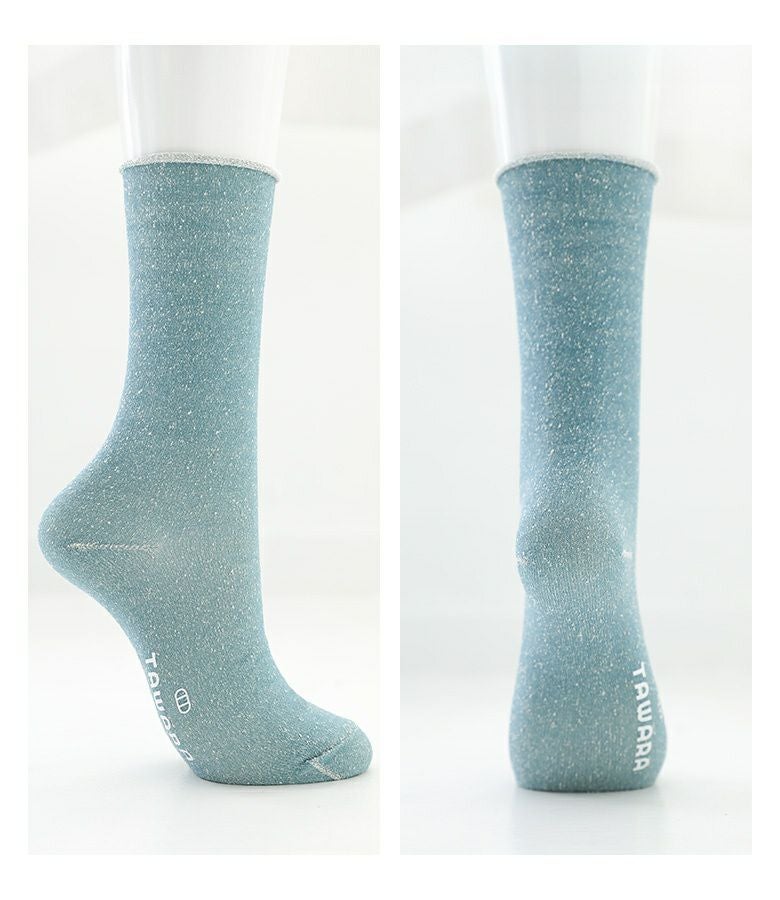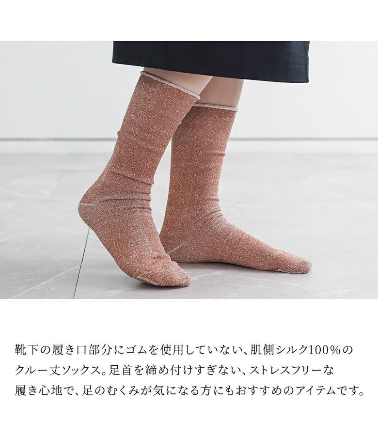 なめらかで履き心地の良いゴムなしクルーソックス。