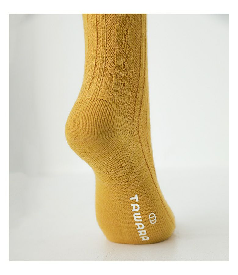 ほっこりとした温かみを感じるケーブル編みクルーソックス。