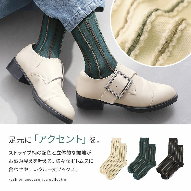 様々なボトムスに合わせやすいクルー丈ソックス♪