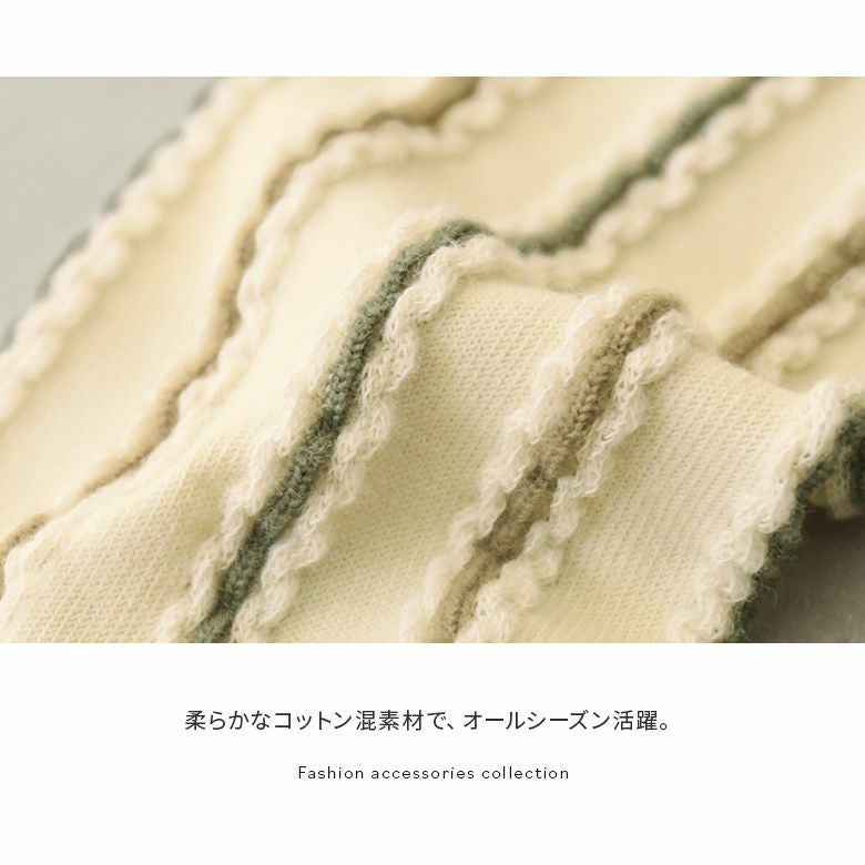 ストライプ柄の配色と立体的な編地がお洒落見えを叶えます。
