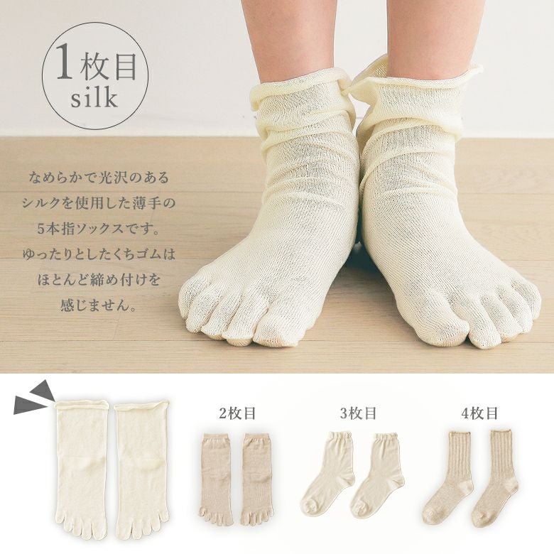 素材 【5本指ソックス(オフホワイト)】絹99% その他繊維1%