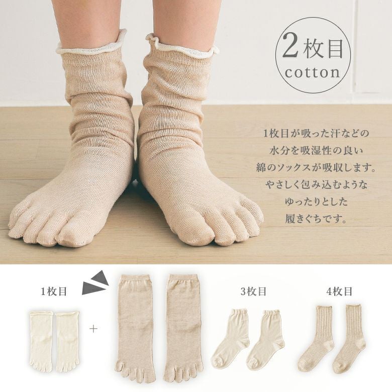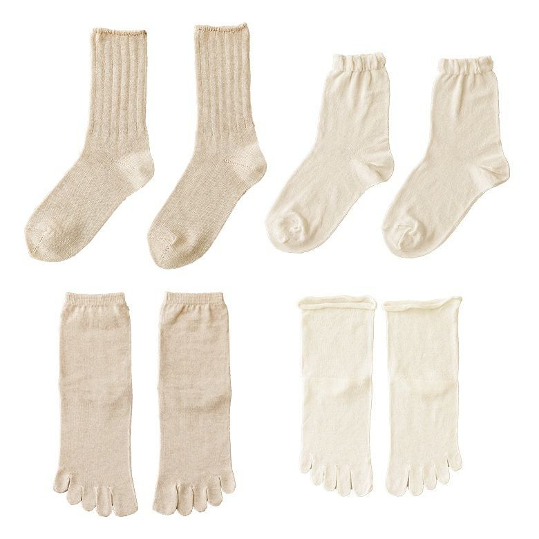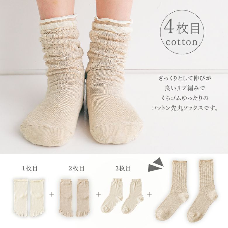 【綿(コットン)5本指(ベージュ)・綿(コットン)先丸ソックス】綿100%